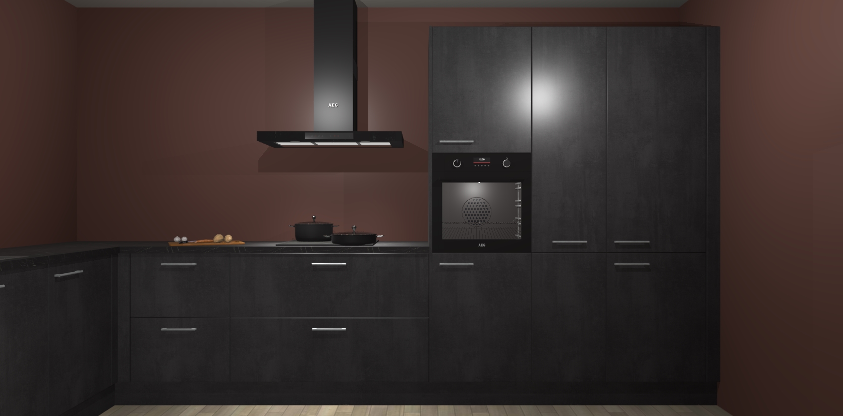 Welkom bij de beton zwarte keuken Nuuk. Deze prachtige keuken zal de komende jaren het middelpunt van de belangstelling in uw huis zijn. Uitgerust met vijf inbouwapparaten komt u nooit kookgereedschap tekort.