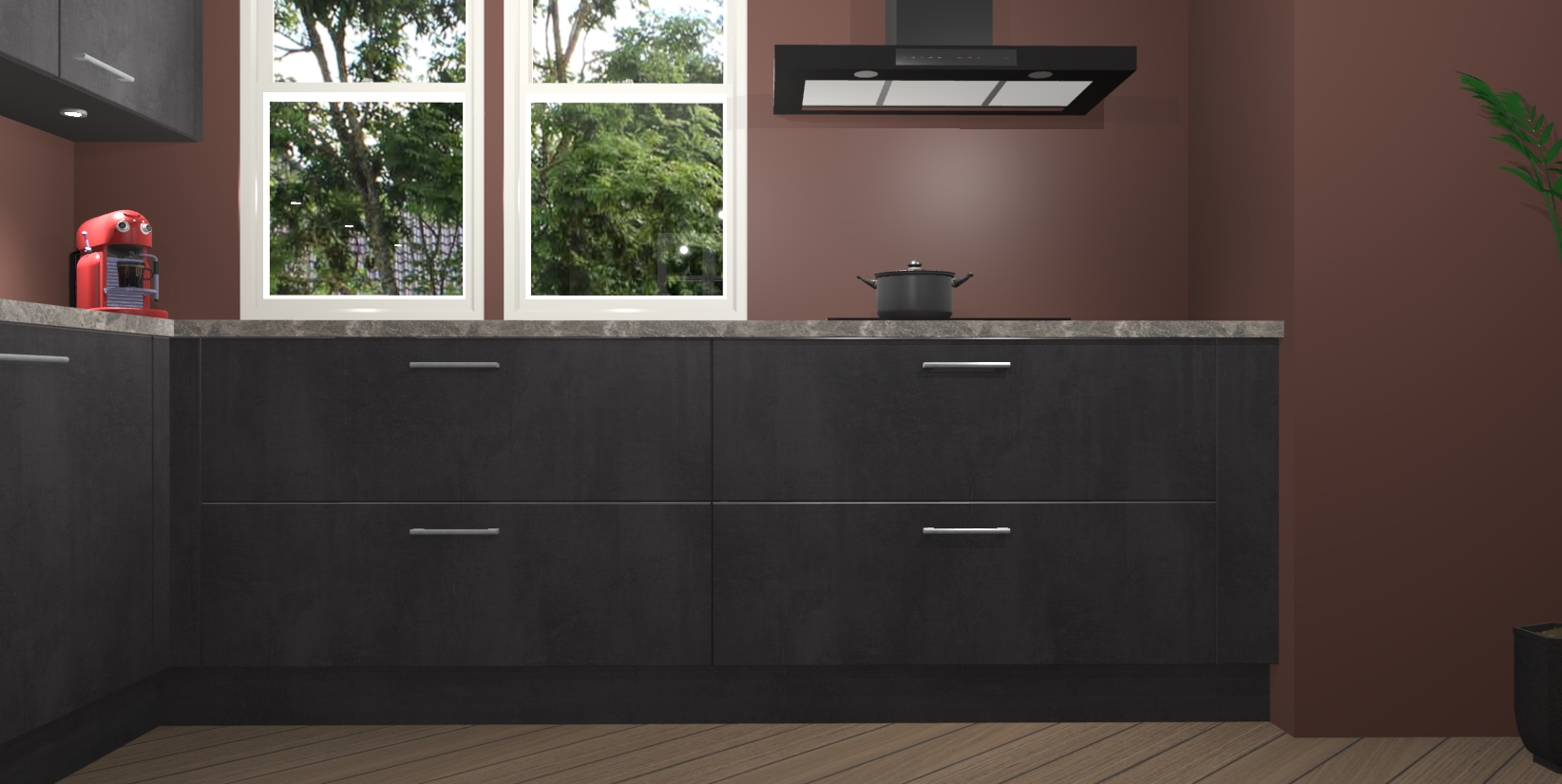 Inclusief plinten, stelpoten en werkblad