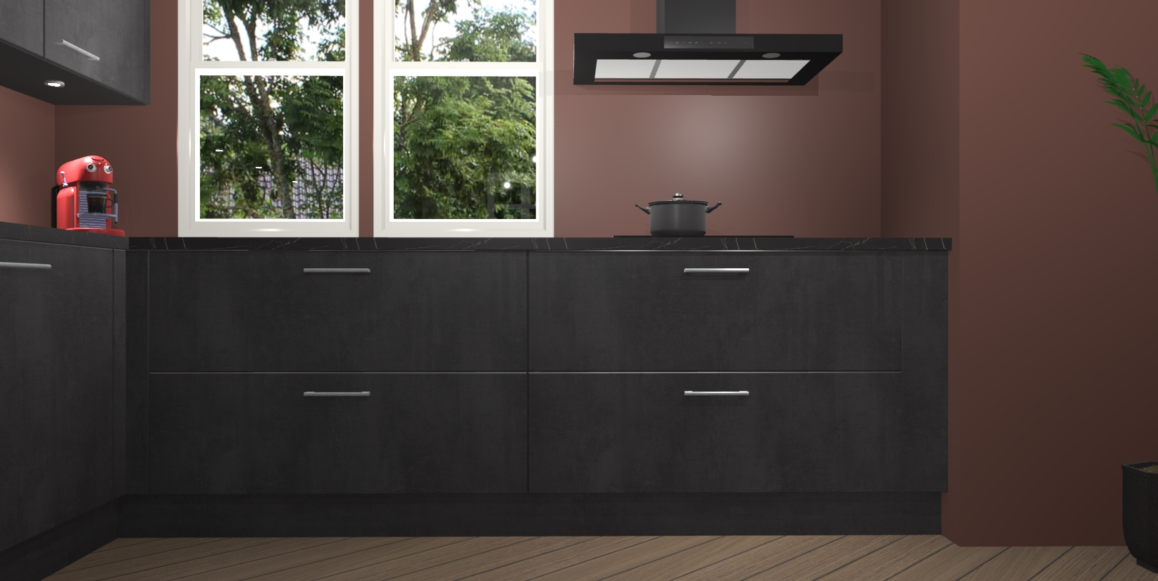 Beton Zwarte keuken Opole zal u de adem benemen met zijn moderne en strakke look!