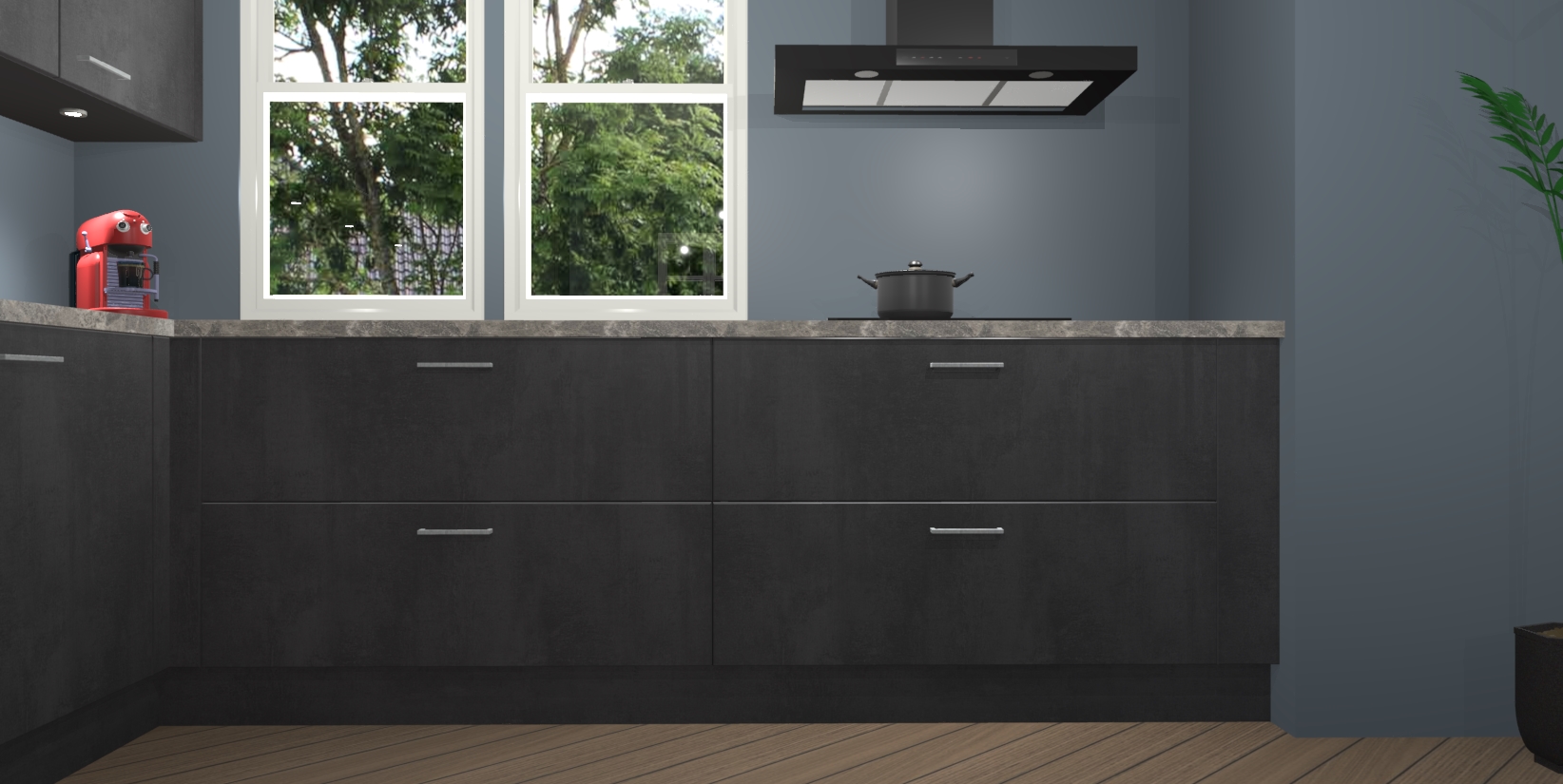 Beton Zwarte keuken Opole zal u de adem benemen met zijn moderne en strakke look!
