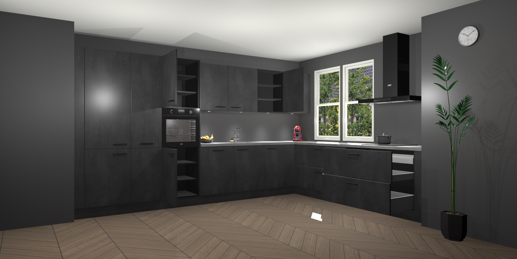 Beton Zwarte keuken Opole zal u de adem benemen met zijn moderne en strakke look!