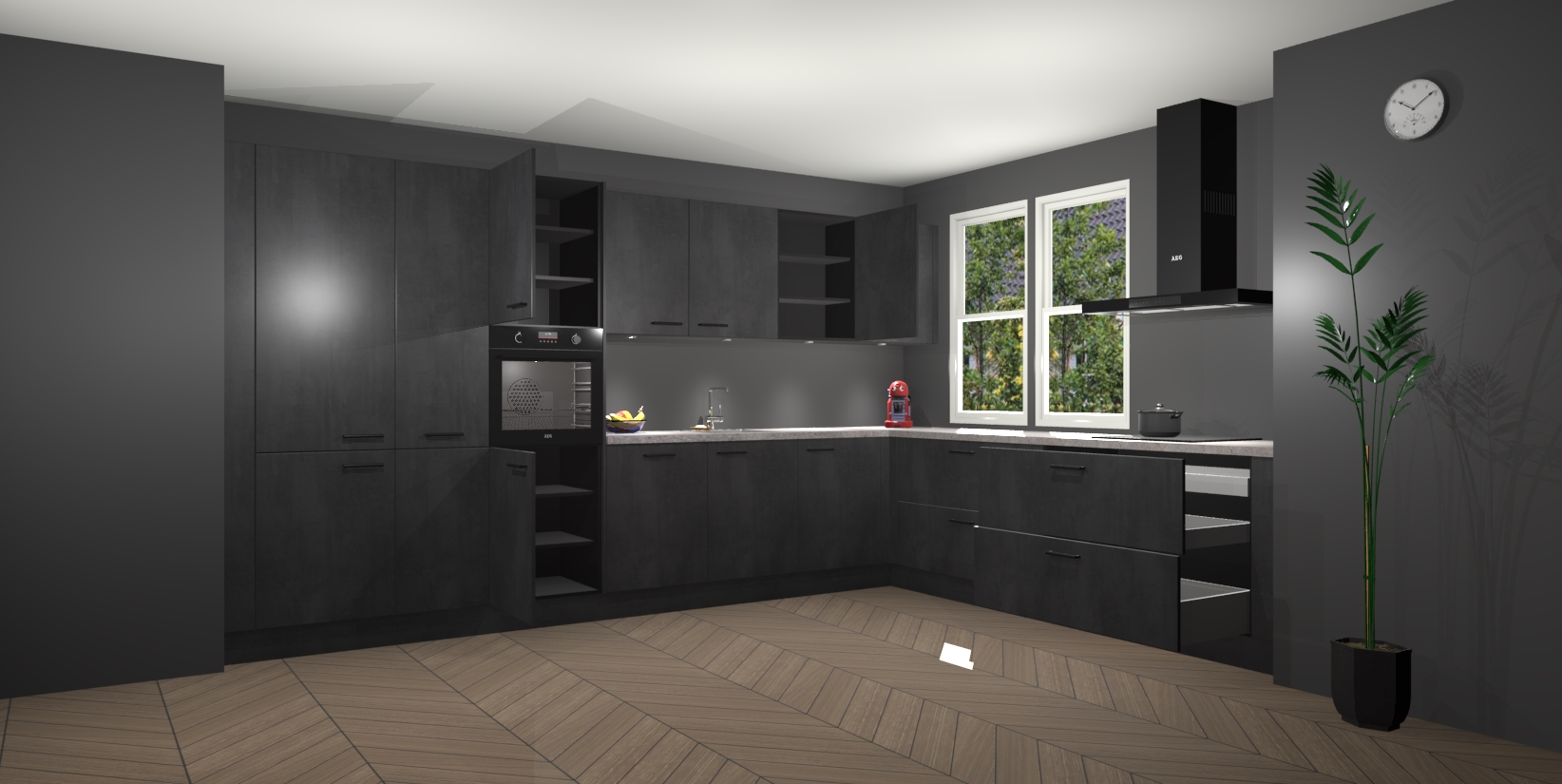 Beton Zwarte keuken Opole zal u de adem benemen met zijn moderne en strakke look!