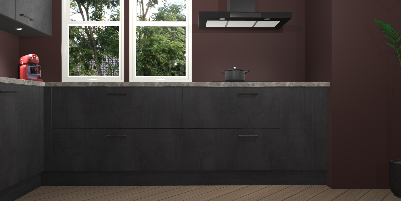 Inclusief plinten, stelpoten en werkblad