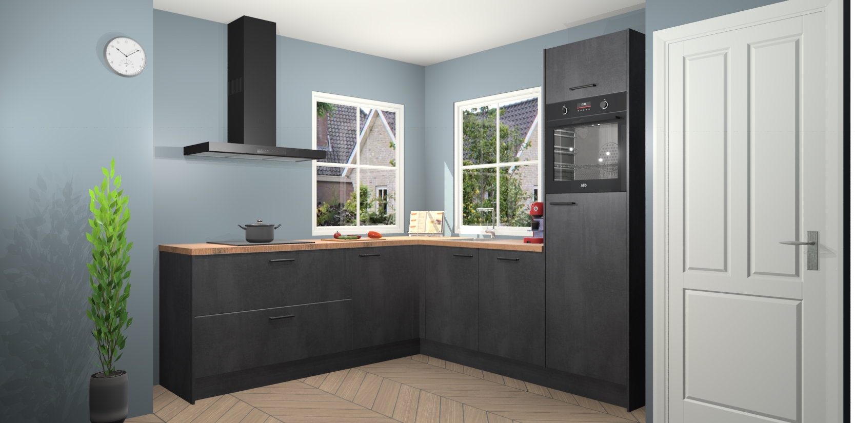 De Beton Zwarte keuken Pai bevat vijf essentiële inbouwapparaten - een oven, inductiekookplaat, afzuigkap, vaatwasser en koelkast - zodat u er na levering meteen in kunt. Voor de slimme kopers die weten dat apparaten vaak het verschil kunnen maken tussen functioneel en luxueus, bieden we eenvoudige upgradeopties naar AEG, van oven naar combimagnetron na bestelling of naar een kookplaat met geïntrigeerde afzuiging. En met onze vaste lage prijs en snelle levering binnen zeven weken vanaf de orderbevestiging hoeft u zich geen zorgen te maken over verborgen kosten of lange levertijden die uw droomkeuken kunnen vertragen.