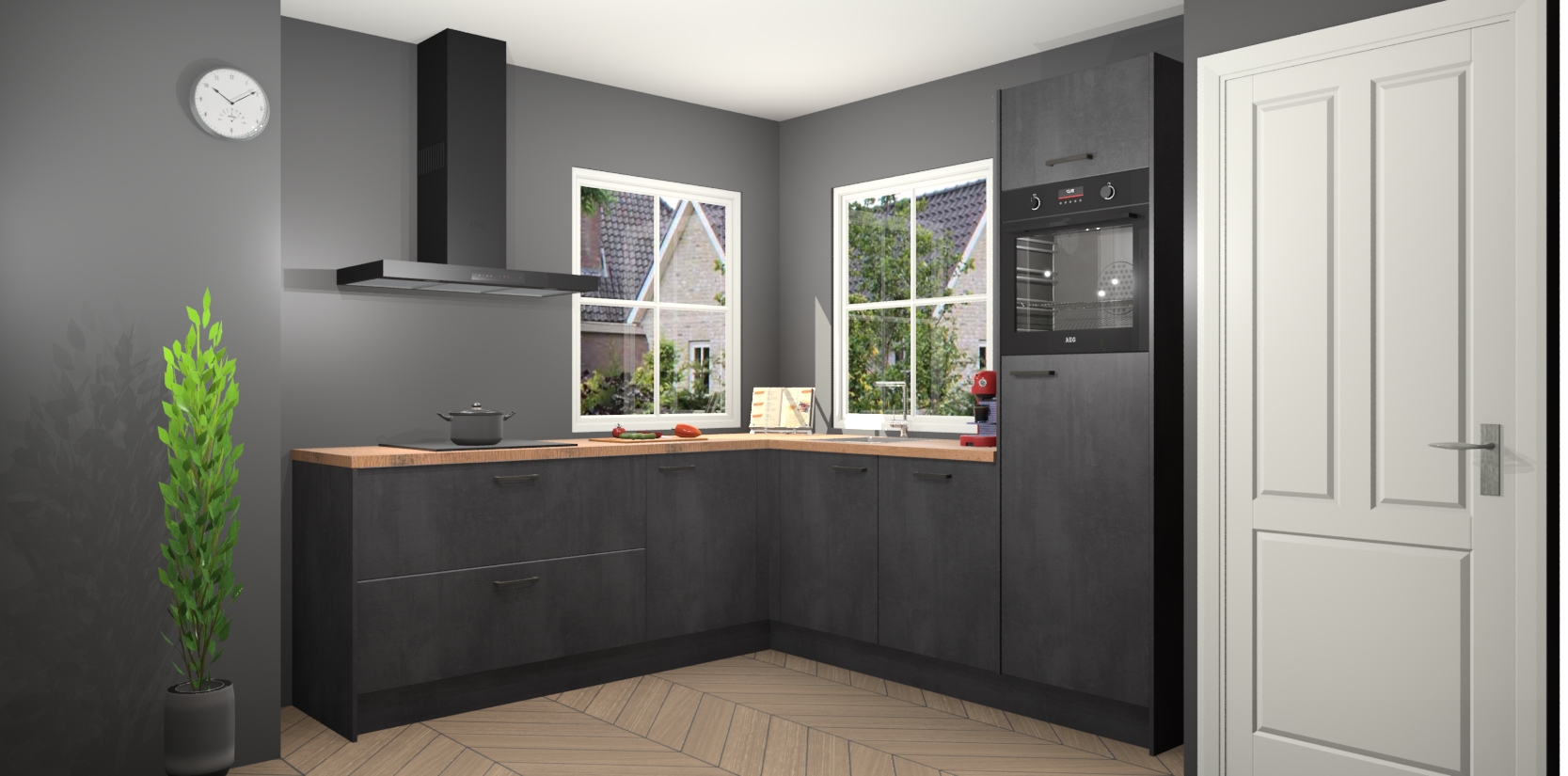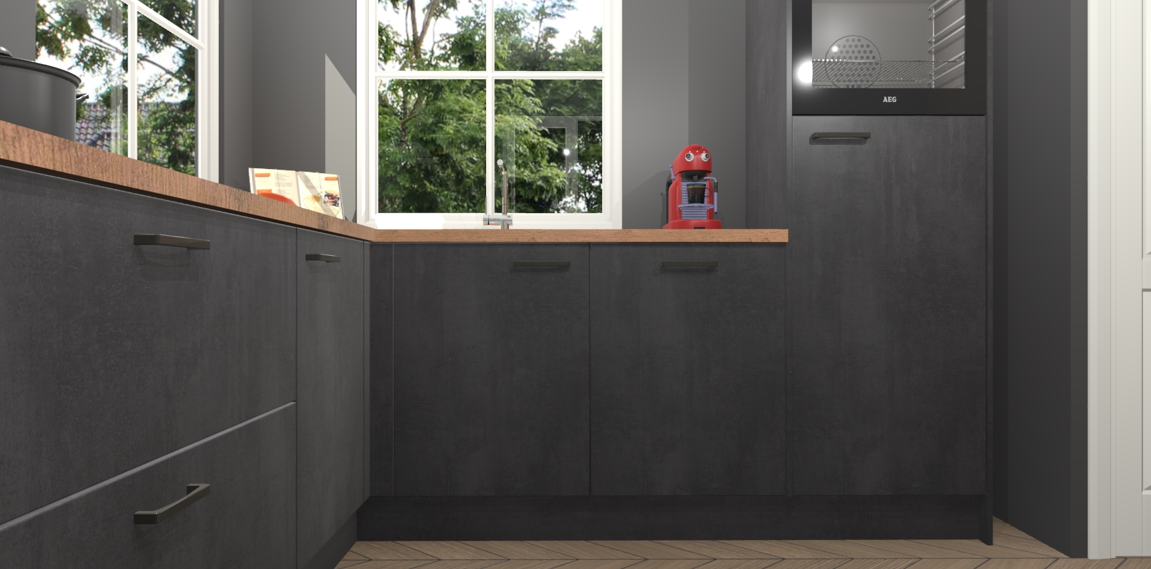 De Beton Zwarte keuken Pai bevat vijf essentiële inbouwapparaten - een oven, inductiekookplaat, afzuigkap, vaatwasser en koelkast - zodat u er na levering meteen in kunt. Voor de slimme kopers die weten dat apparaten vaak het verschil kunnen maken tussen functioneel en luxueus, bieden we eenvoudige upgradeopties naar AEG, van oven naar combimagnetron na bestelling of naar een kookplaat met geïntrigeerde afzuiging. En met onze vaste lage prijs en snelle levering binnen zeven weken vanaf de orderbevestiging hoeft u zich geen zorgen te maken over verborgen kosten of lange levertijden die uw droomkeuken kunnen vertragen.