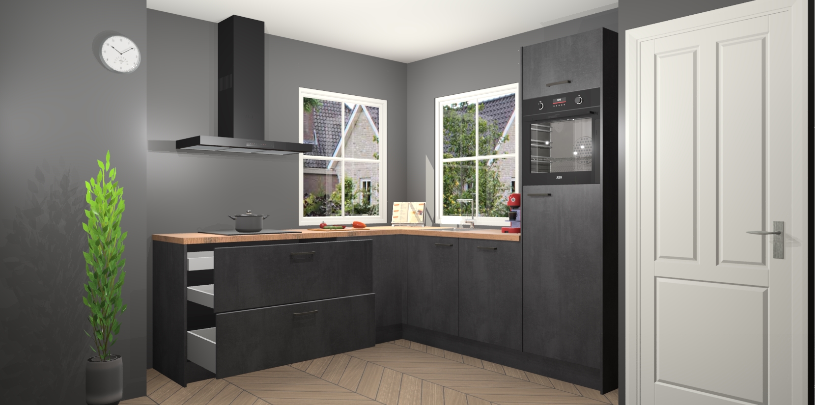 U krijgt niet alleen een prachtige hoekkeuken voor een onklopbare prijs - met details zoals soft close deuren om uw zintuigen te verwennen - maar u investeert ook in vakmanschap dat lang meegaat. Met zijn afgeronde randen is elk stuk met precisie en passie ontworpen om elegantie in uw ruimte te brengen. Eenvoudigweg gastvrijheid delen met familie en vrienden wordt mogelijk met de Beton Zwarte keuken Pai! Elegant design gecombineerd met hoogwaardige materialen en een betaalbaar prijskaartje maken deze hoekkeuken de perfecte keuze voor slimme huiseigenaren die op zoek zijn naar een superieure stijl die de tand des tijds zal doorstaan. Wacht niet: bestel uw nieuwe Beton Zwarte keuken Pai vandaag nog!