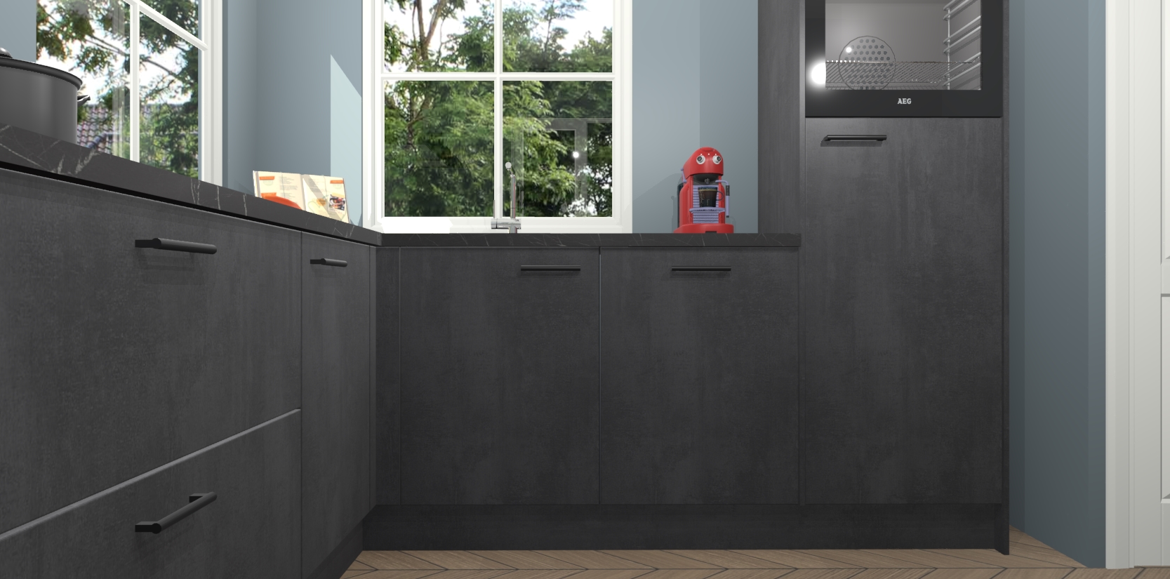 De Beton Zwarte keuken Pai bevat vijf essentiële inbouwapparaten - een oven, inductiekookplaat, afzuigkap, vaatwasser en koelkast - zodat u er na levering meteen in kunt. Voor de slimme kopers die weten dat apparaten vaak het verschil kunnen maken tussen functioneel en luxueus, bieden we eenvoudige upgradeopties naar AEG, van oven naar combimagnetron na bestelling of naar een kookplaat met geïntrigeerde afzuiging. En met onze vaste lage prijs en snelle levering binnen zeven weken vanaf de orderbevestiging hoeft u zich geen zorgen te maken over verborgen kosten of lange levertijden die uw droomkeuken kunnen vertragen.