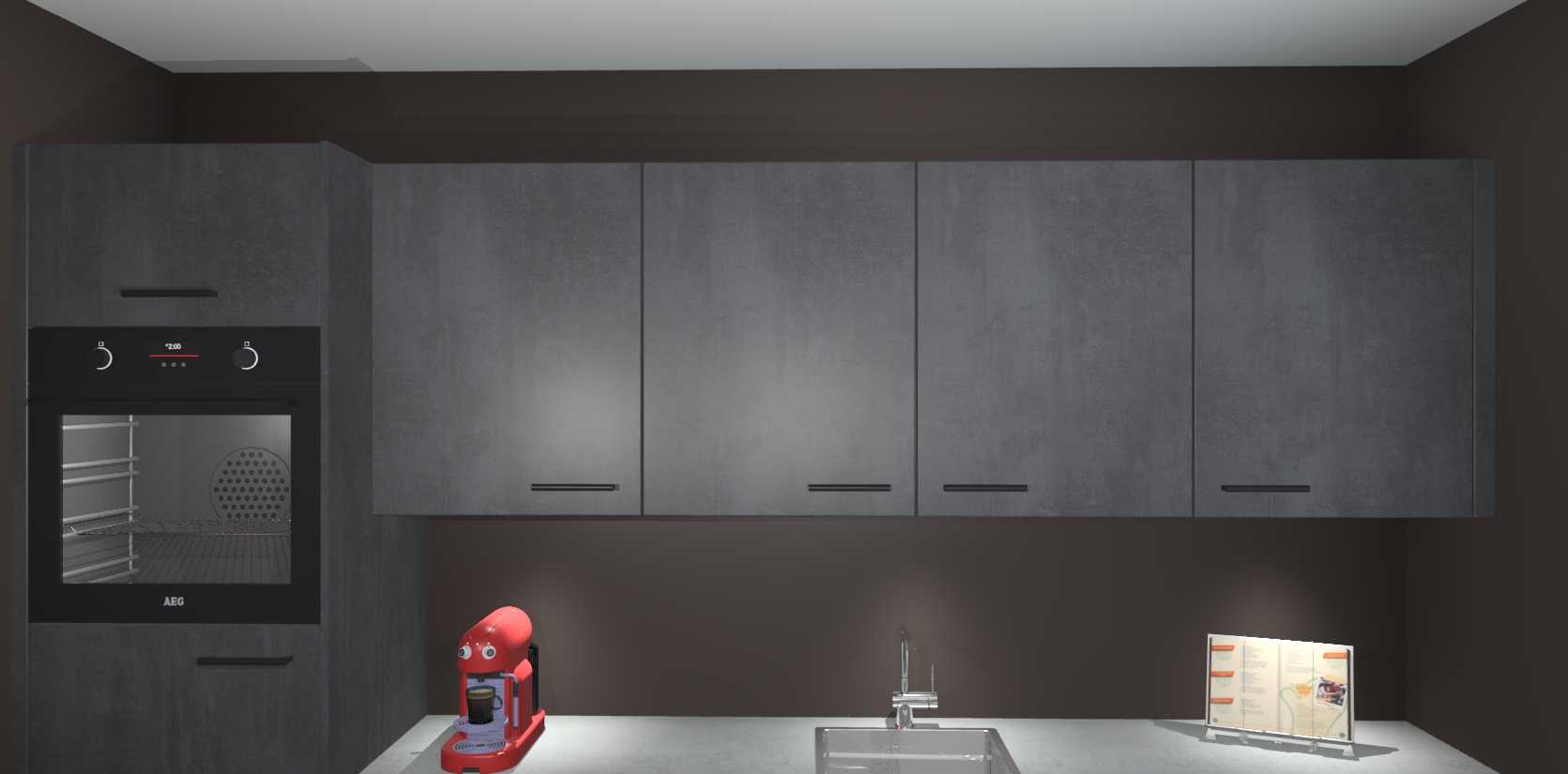 Met een modern, tijdloos design en ruime opslagruimte, zult u zich in no-time thuis voelen in uw nieuwe keuken. Uw leven wordt eenvoudiger met de soft-close deuren die voor het ultieme stille comfort zorgen - geen geluid dat u stoort terwijl u kookt. Ook is de keuken voorzien van 5 ingebouwde apparaten: een oven, inductie kookplaat, afzuigkap, vaatwasser en koelkast. Deze kunnen gemakkelijk na bestelling worden bijgewerkt naar AEG - waardoor uw luxe ervaring compleet is.