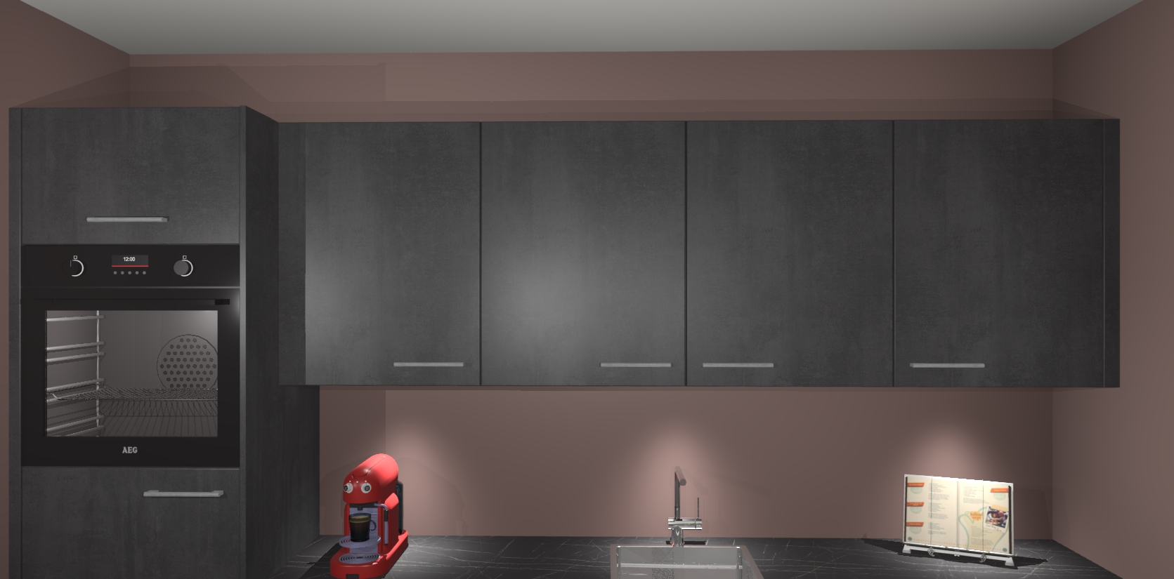 Met een modern, tijdloos design en ruime opslagruimte, zult u zich in no-time thuis voelen in uw nieuwe keuken. Uw leven wordt eenvoudiger met de soft-close deuren die voor het ultieme stille comfort zorgen - geen geluid dat u stoort terwijl u kookt. Ook is de keuken voorzien van 5 ingebouwde apparaten: een oven, inductie kookplaat, afzuigkap, vaatwasser en koelkast. Deze kunnen gemakkelijk na bestelling worden bijgewerkt naar AEG - waardoor uw luxe ervaring compleet is.
