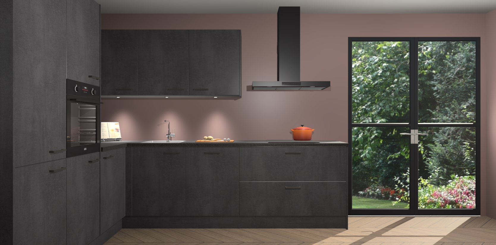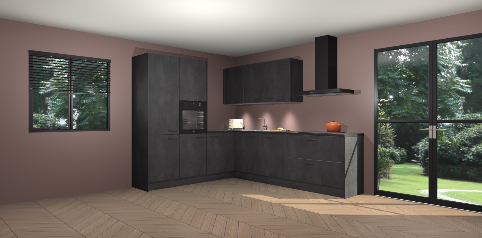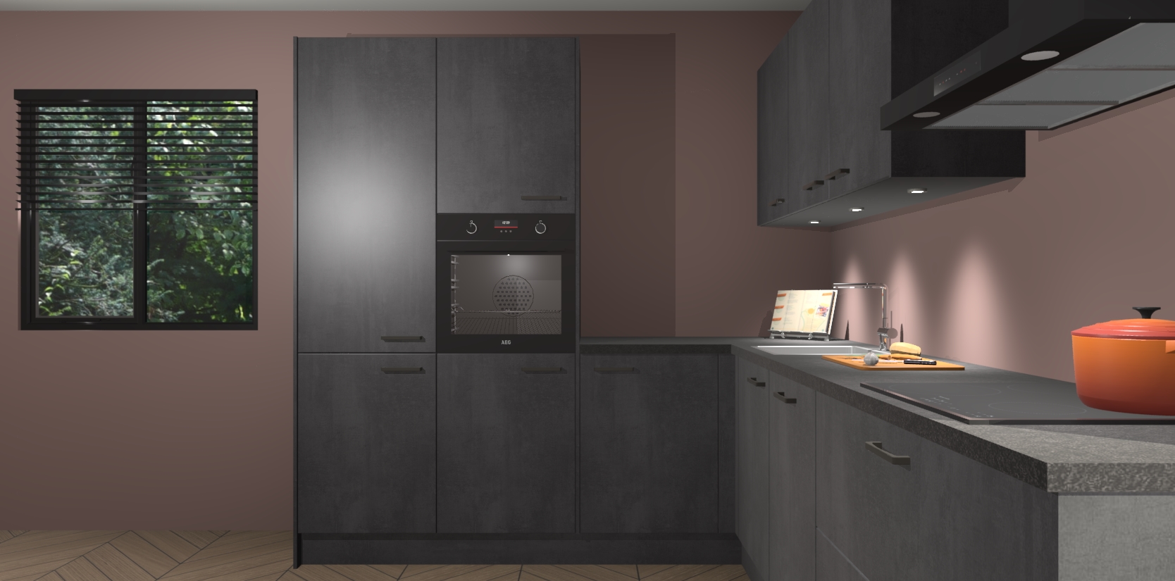 Maak kennis met de beton zwarte keuken Parla - de perfecte aanvulling voor uw moderne keuken! Ervaar tijdloos design, elegantie en een chique uitstraling met onze zwarte handgrepen, soft-close deuren en veel opbergruimte. Dit alles wordt aangeboden tegen een vaste lage prijs voor ongeëvenaarde Duitse keukenkwaliteit!