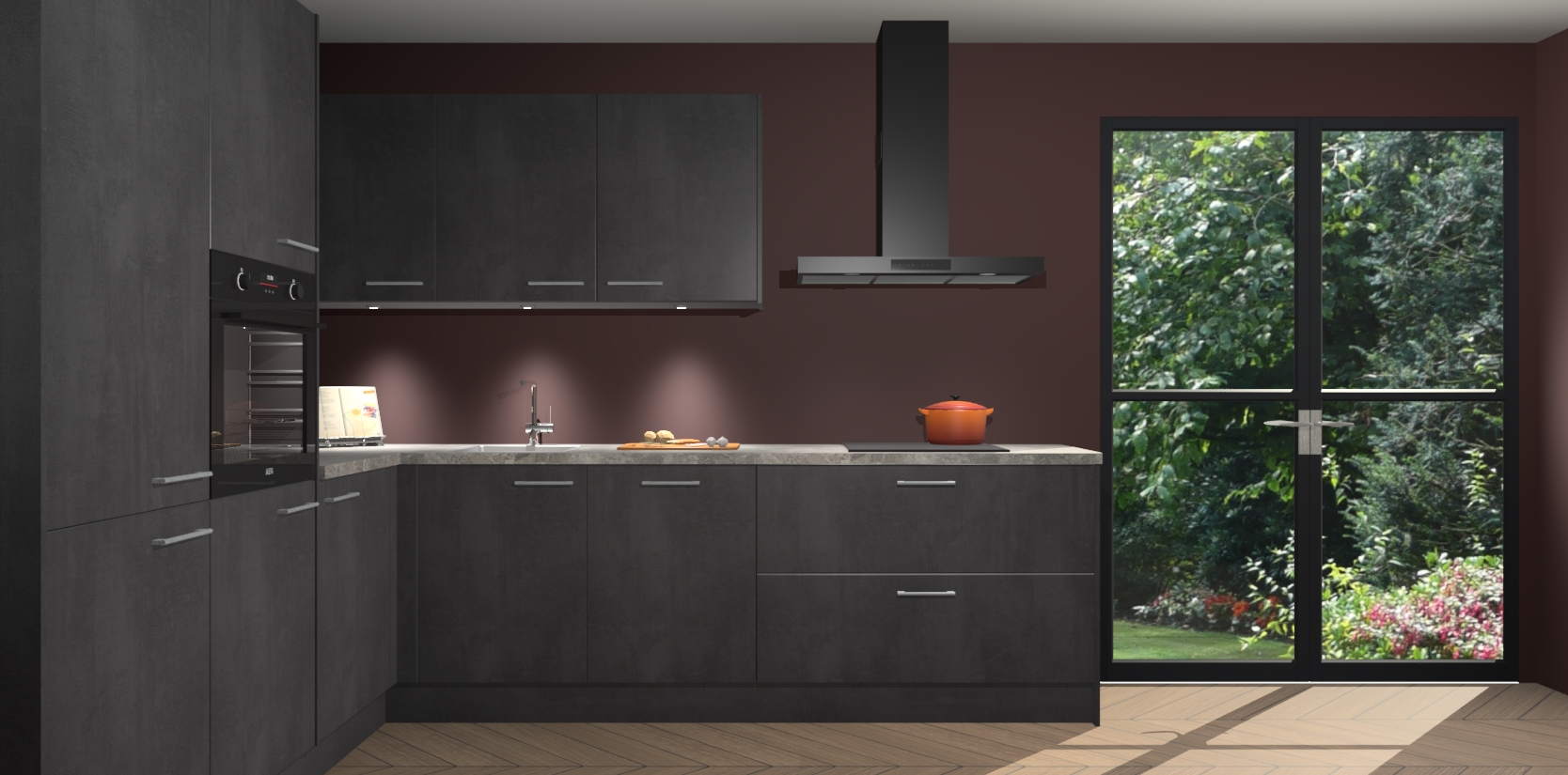 Maak kennis met de beton zwarte keuken Parla - de perfecte aanvulling voor uw moderne keuken! Ervaar tijdloos design, elegantie en een chique uitstraling met onze zwarte handgrepen, soft-close deuren en veel opbergruimte. Dit alles wordt aangeboden tegen een vaste lage prijs voor ongeëvenaarde Duitse keukenkwaliteit!