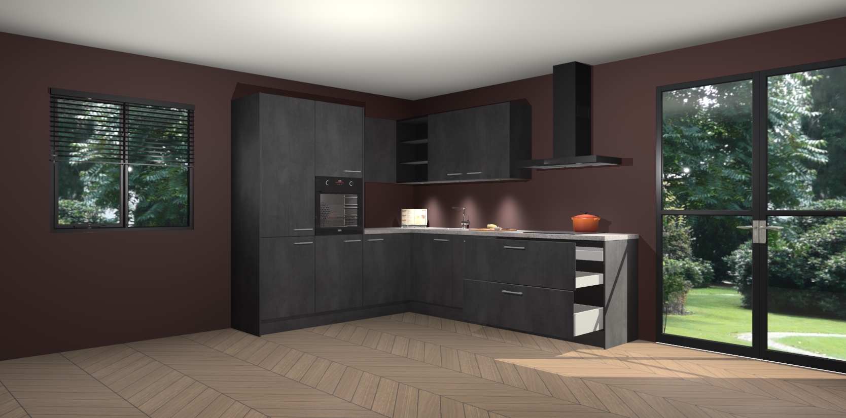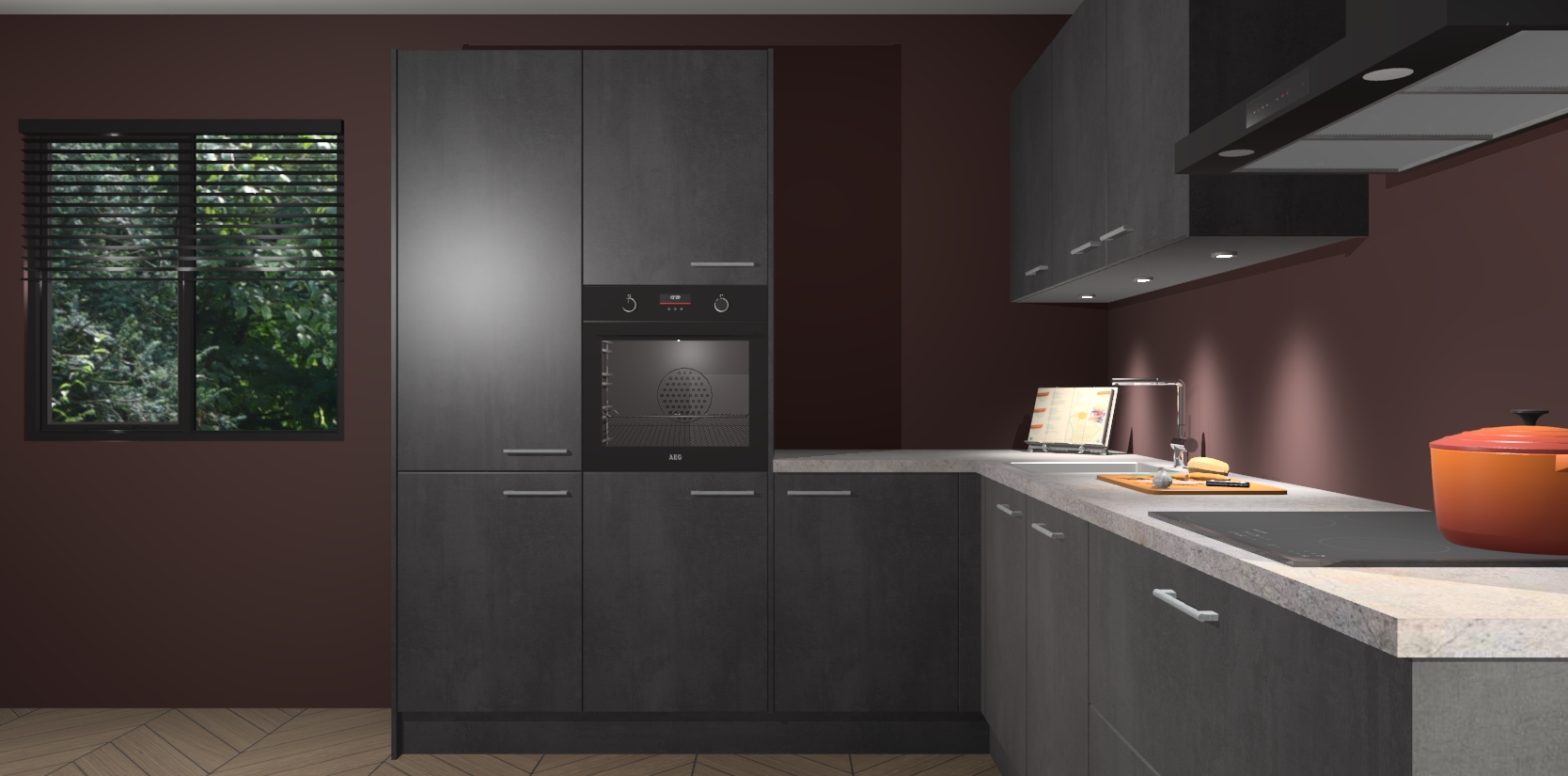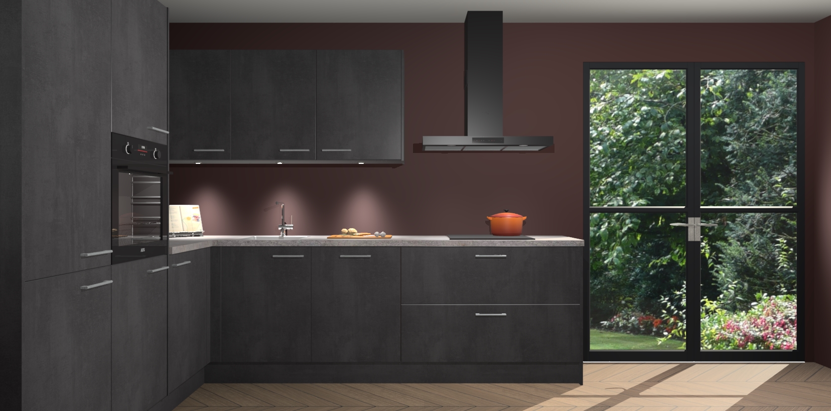 Maak kennis met de beton zwarte keuken Parla - de perfecte aanvulling voor uw moderne keuken! Ervaar tijdloos design, elegantie en een chique uitstraling met onze zwarte handgrepen, soft-close deuren en veel opbergruimte. Dit alles wordt aangeboden tegen een vaste lage prijs voor ongeëvenaarde Duitse keukenkwaliteit!