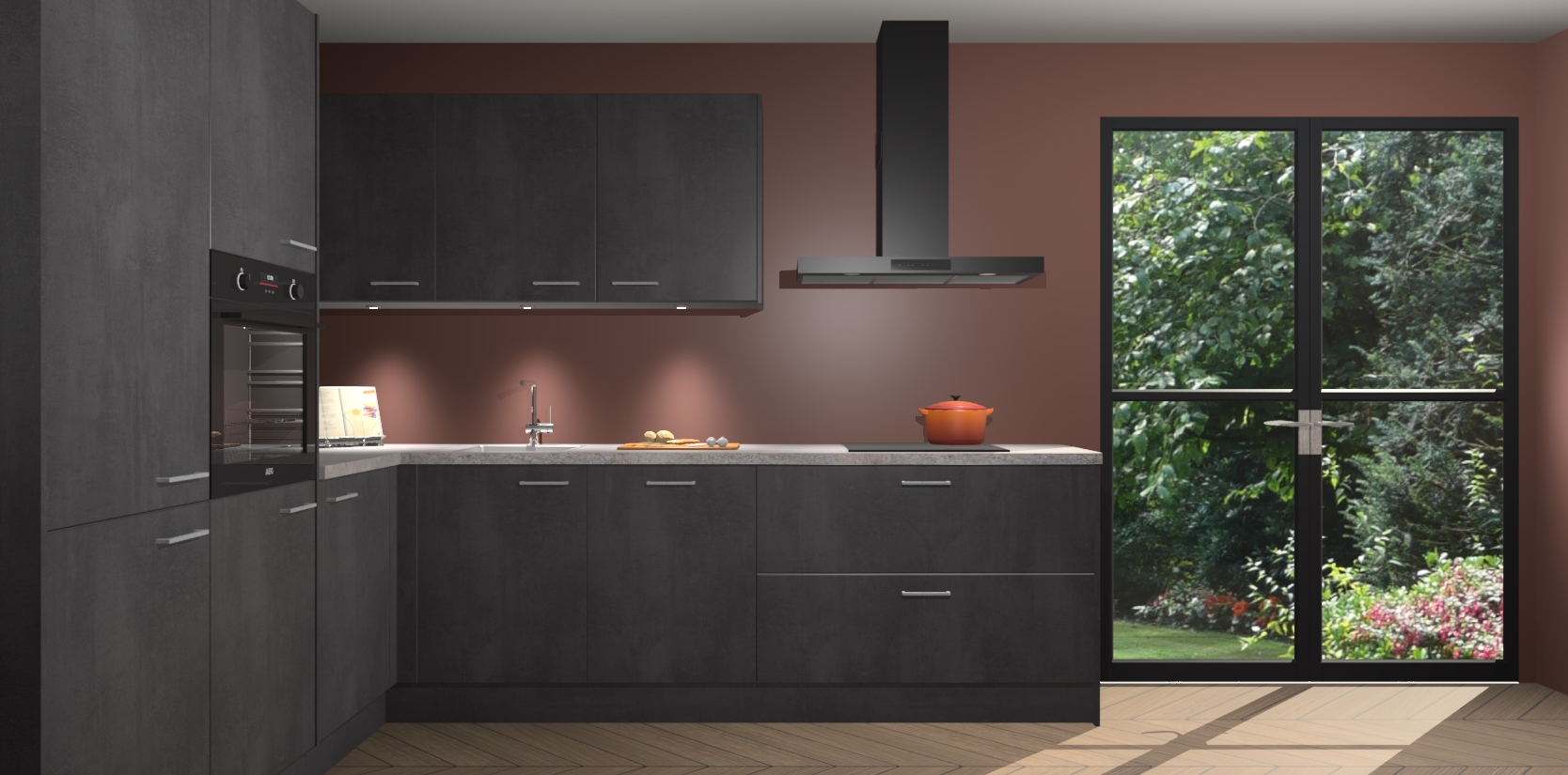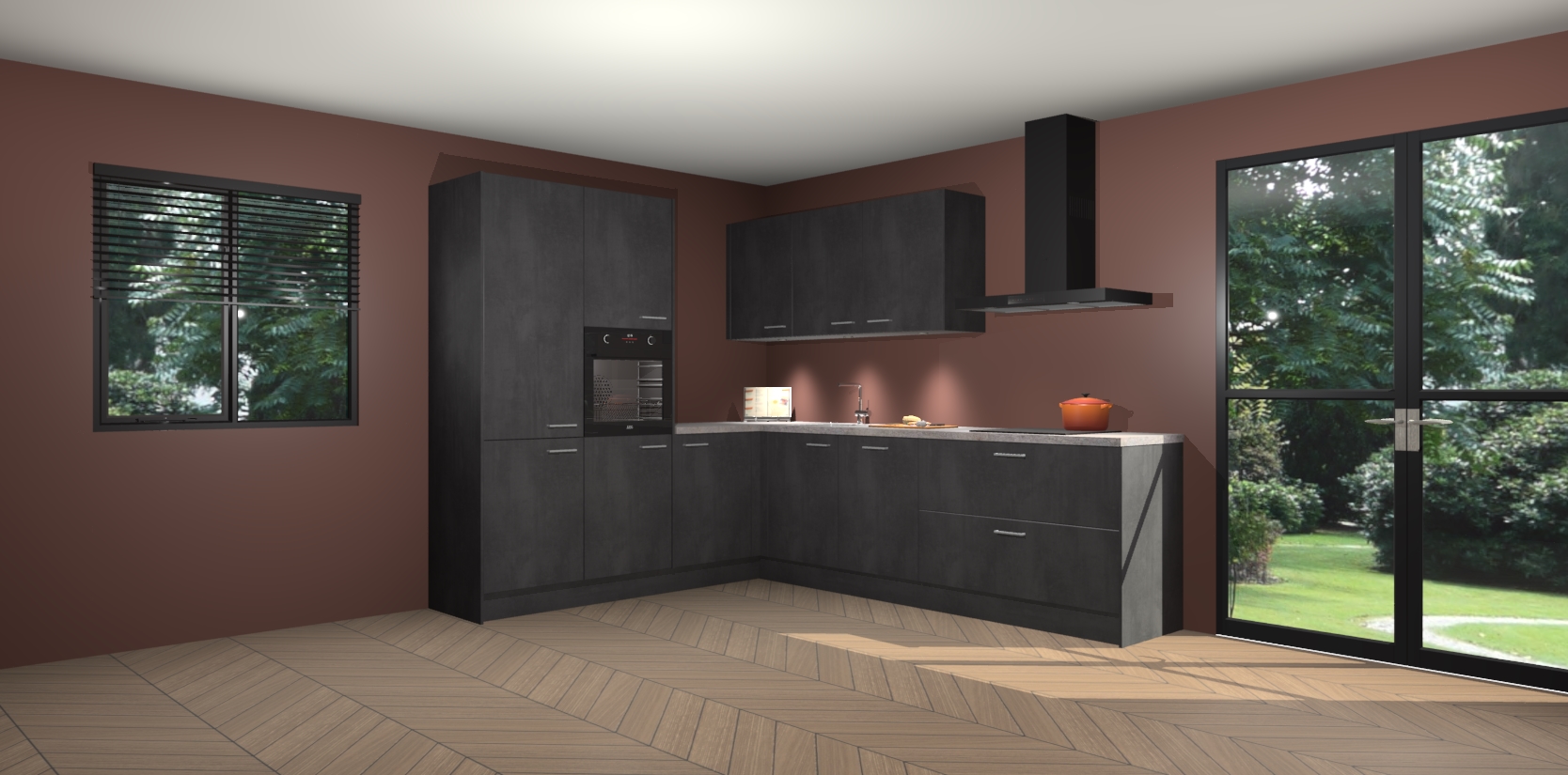 Maak kennis met de beton zwarte keuken Parla - de perfecte aanvulling voor uw moderne keuken! Ervaar tijdloos design, elegantie en een chique uitstraling met onze zwarte handgrepen, soft-close deuren en veel opbergruimte. Dit alles wordt aangeboden tegen een vaste lage prijs voor ongeëvenaarde Duitse keukenkwaliteit!