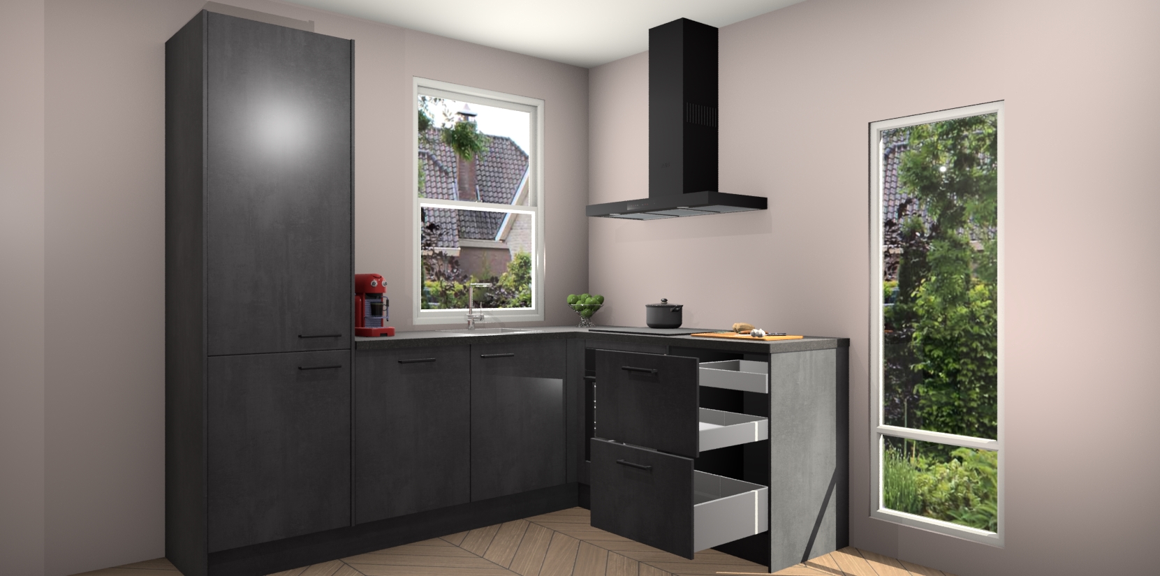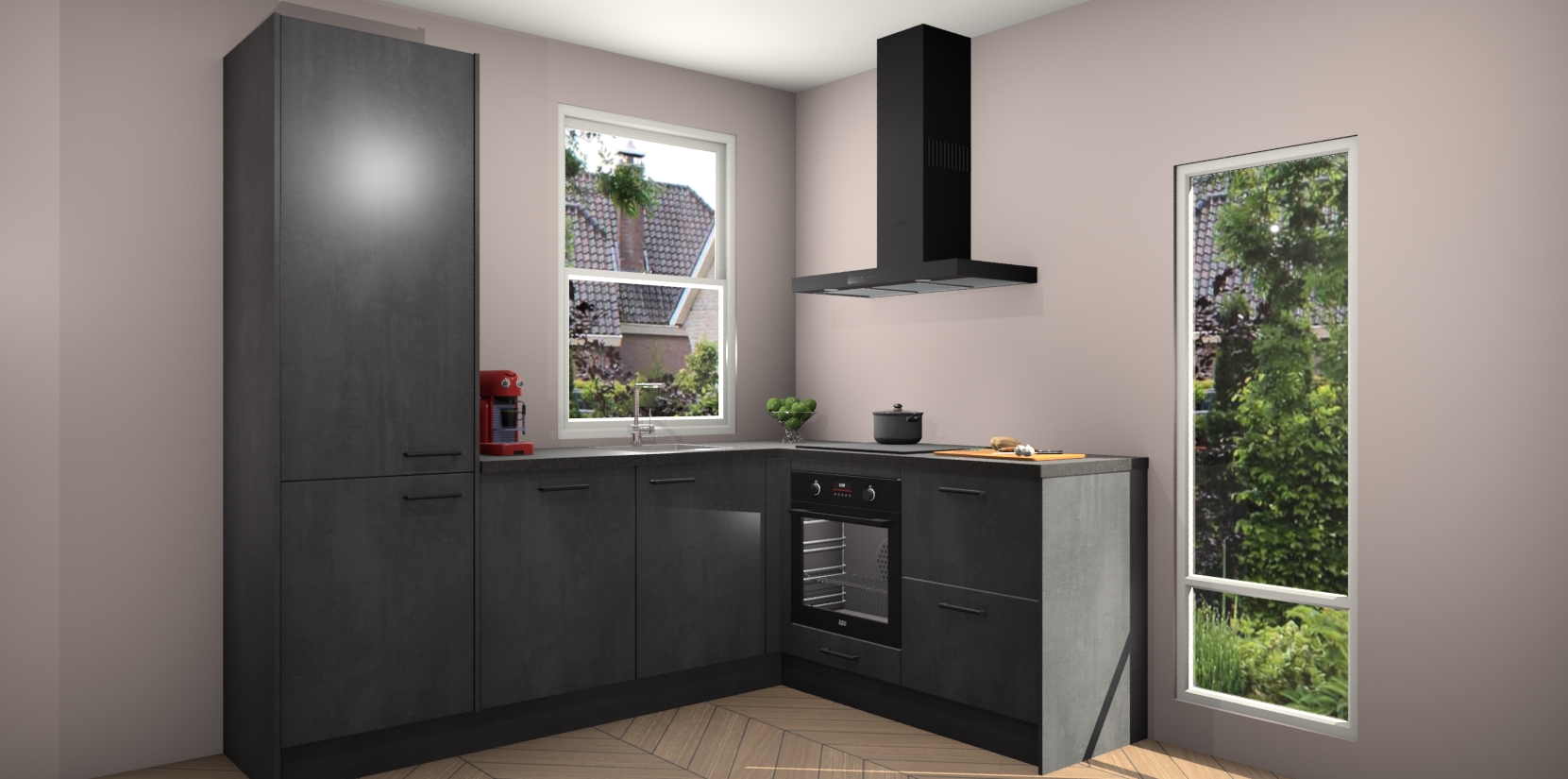 De prachtige Beton Zwarte keuken Phuket is de perfecte keuze als u op zoek bent naar een moderne hoekkeuken met alle luxe en comfort die u kunt verwachten! De uitstraling in het houtlook-design draagt bij aan de warme sfeer die u nu al voelt wanneer u er naar kijkt. Heeft u genoeg van ouderwetse keukens? Probeer dan direct deze moderne, mooie hoekkeukens en laat iedereen verbluft achter!