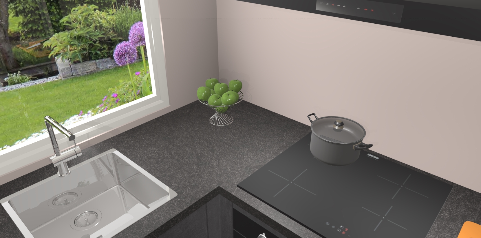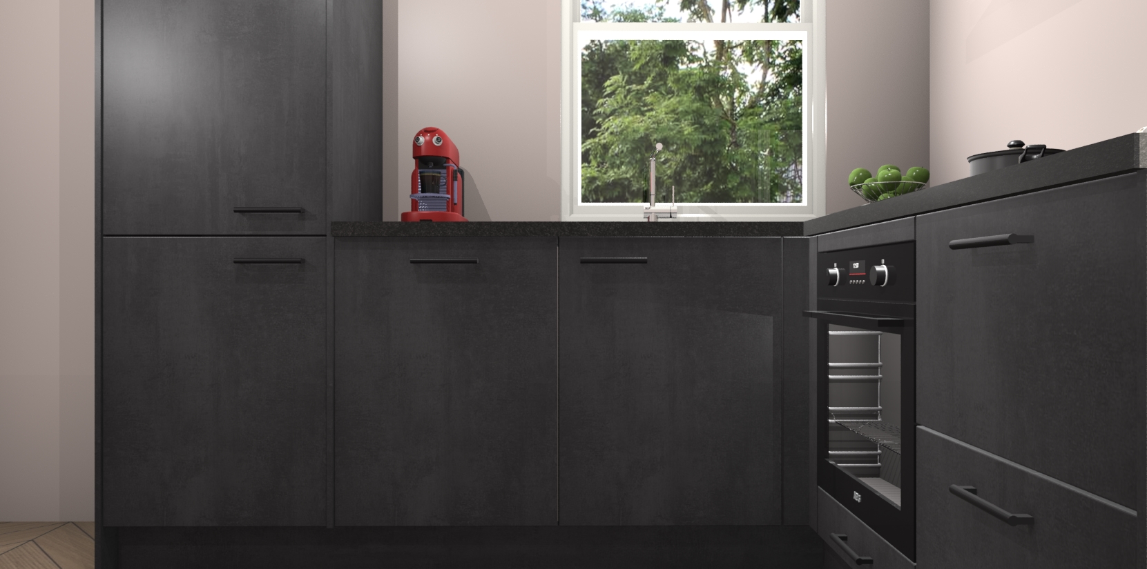 De Beton Zwarte keuken Phuket heeft alles wat u maar kunt wensen. Niet alleen zijn er softclose deuren, maar ook 5 ingebouwde apparaten: een oven, inductiekookplaat, afzuigkap, vaatwasser en koelkast - waarbij u later gemakkelijk naar het AEG merk, van inductiekookplaat naar kookplaat met geïntegreerde afzuiging of van oven naar combimagnetron kunt upgraden. Dat alles tegen een vast laag tarief! Bovendien geeft de Beton Zwarte keuken Phuket supersnelle levering van 7 weken. Echt iets voor u als u er niet op wilt wachten om het resultaat te zien in eigen keuken!