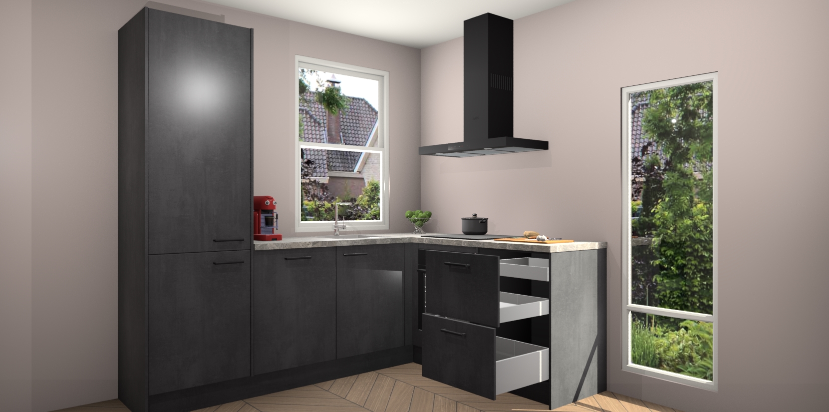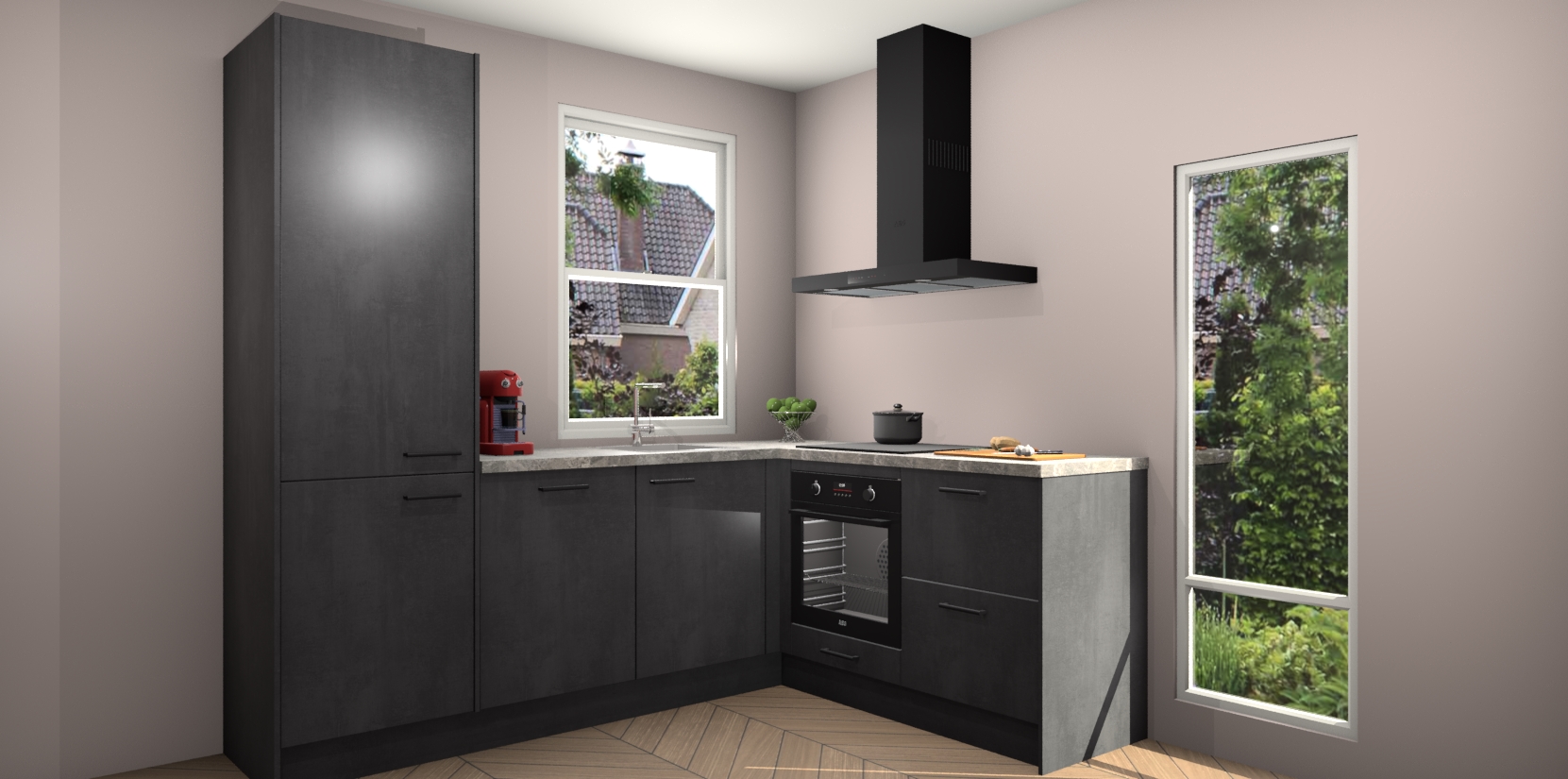 De prachtige Beton Zwarte keuken Phuket is de perfecte keuze als u op zoek bent naar een moderne hoekkeuken met alle luxe en comfort die u kunt verwachten! De uitstraling in het houtlook-design draagt bij aan de warme sfeer die u nu al voelt wanneer u er naar kijkt. Heeft u genoeg van ouderwetse keukens? Probeer dan direct deze moderne, mooie hoekkeukens en laat iedereen verbluft achter!