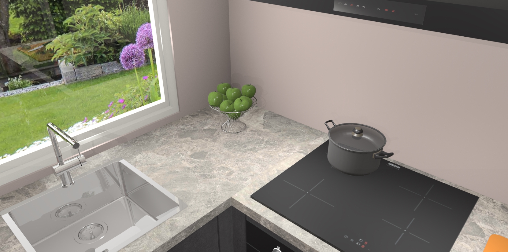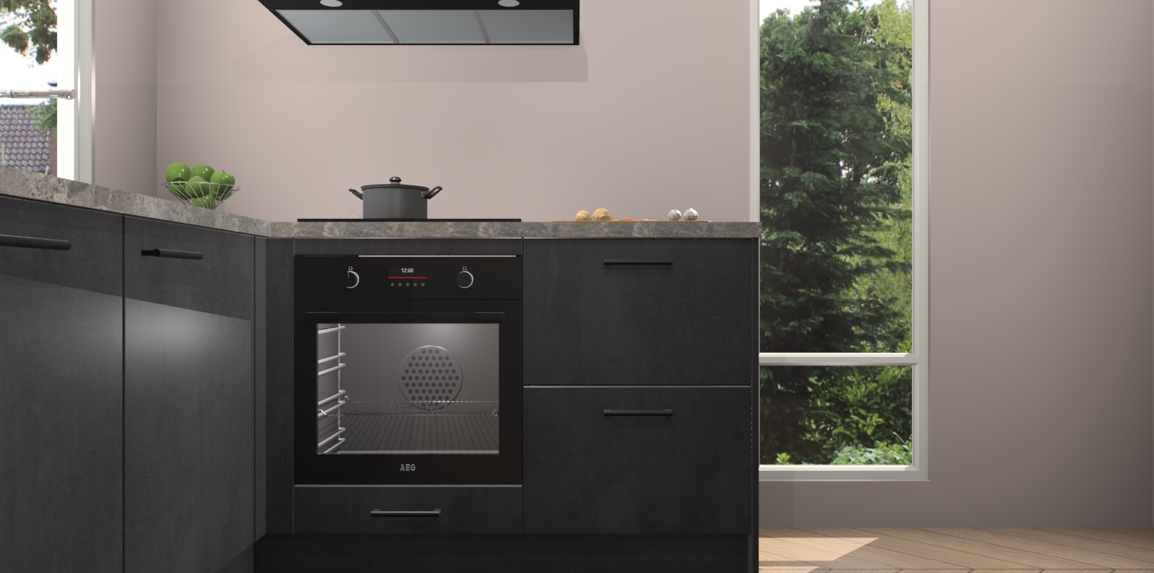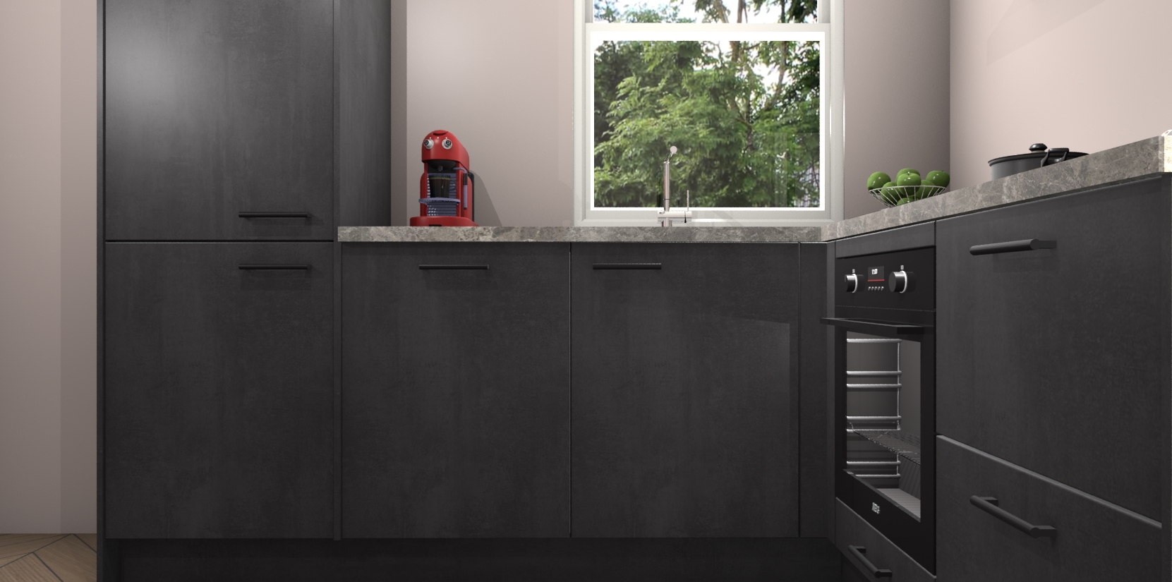 De Beton Zwarte keuken Phuket heeft alles wat u maar kunt wensen. Niet alleen zijn er softclose deuren, maar ook 5 ingebouwde apparaten: een oven, inductiekookplaat, afzuigkap, vaatwasser en koelkast - waarbij u later gemakkelijk naar het AEG merk, van inductiekookplaat naar kookplaat met geïntegreerde afzuiging of van oven naar combimagnetron kunt upgraden. Dat alles tegen een vast laag tarief! Bovendien geeft de Beton Zwarte keuken Phuket supersnelle levering van 7 weken. Echt iets voor u als u er niet op wilt wachten om het resultaat te zien in eigen keuken!