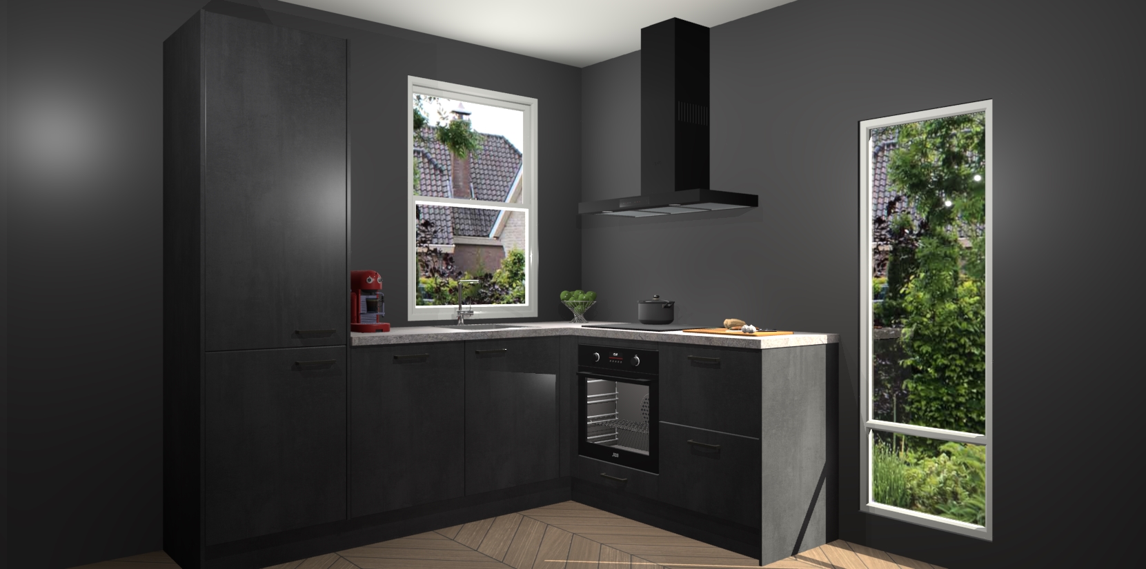 De prachtige Beton Zwarte keuken Phuket is de perfecte keuze als u op zoek bent naar een moderne hoekkeuken met alle luxe en comfort die u kunt verwachten! De uitstraling in het houtlook-design draagt bij aan de warme sfeer die u nu al voelt wanneer u er naar kijkt. Heeft u genoeg van ouderwetse keukens? Probeer dan direct deze moderne, mooie hoekkeukens en laat iedereen verbluft achter!