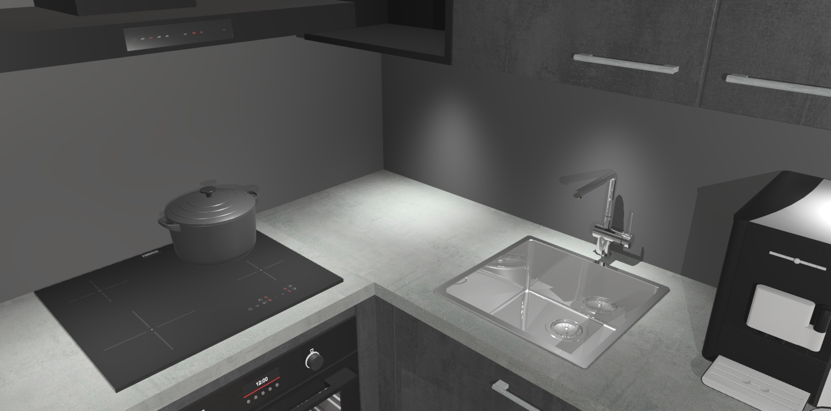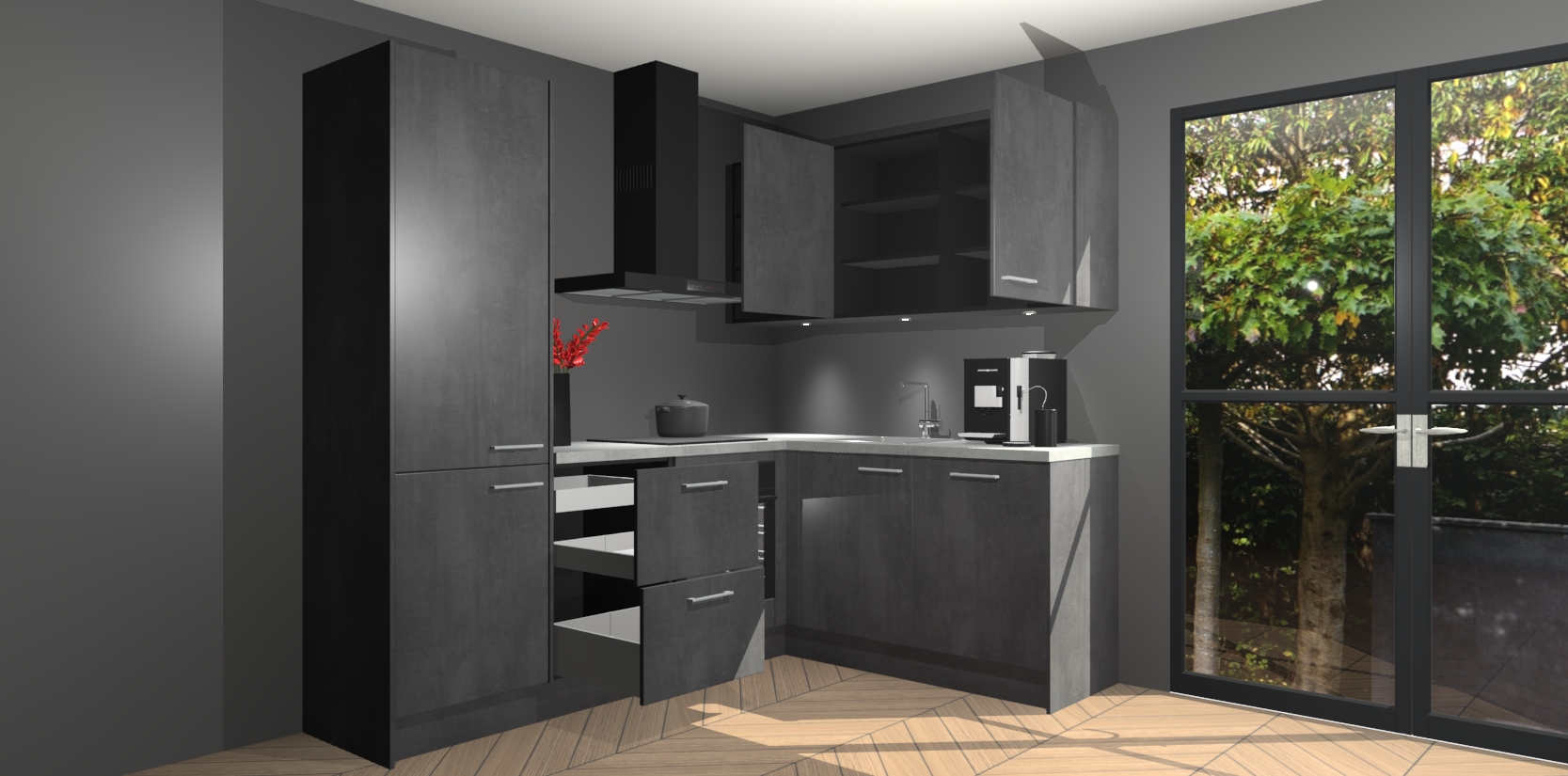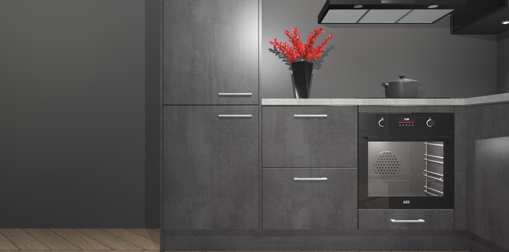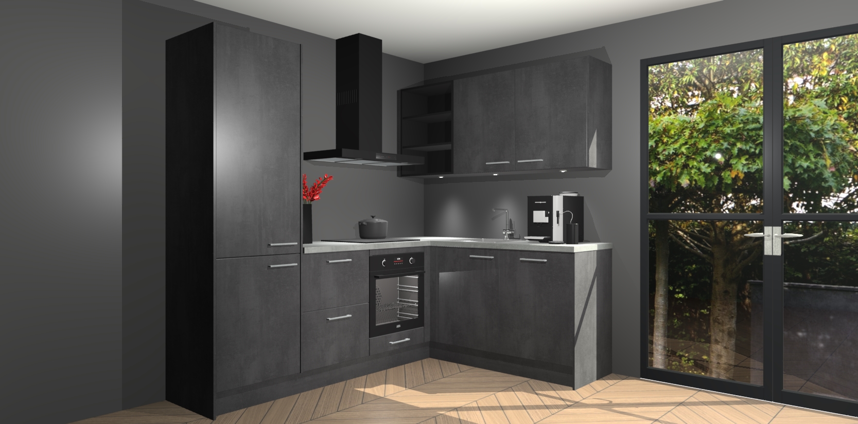 Wauw, dit is de Beton Zwarte keuken Pilsen! U kunt gerust zeggen dat u elegantie combineert met functionaliteit met deze keuken. Met een modern en chique ontwerp is de keuken precies wat u nodig heeft om uw ruimte te verfraaien. De binnenzijde van de kasten is in dezelfde donkere kleur als de buitenzijde voor een uniforme look, compleet met softclose-kasten die stil sluiten.