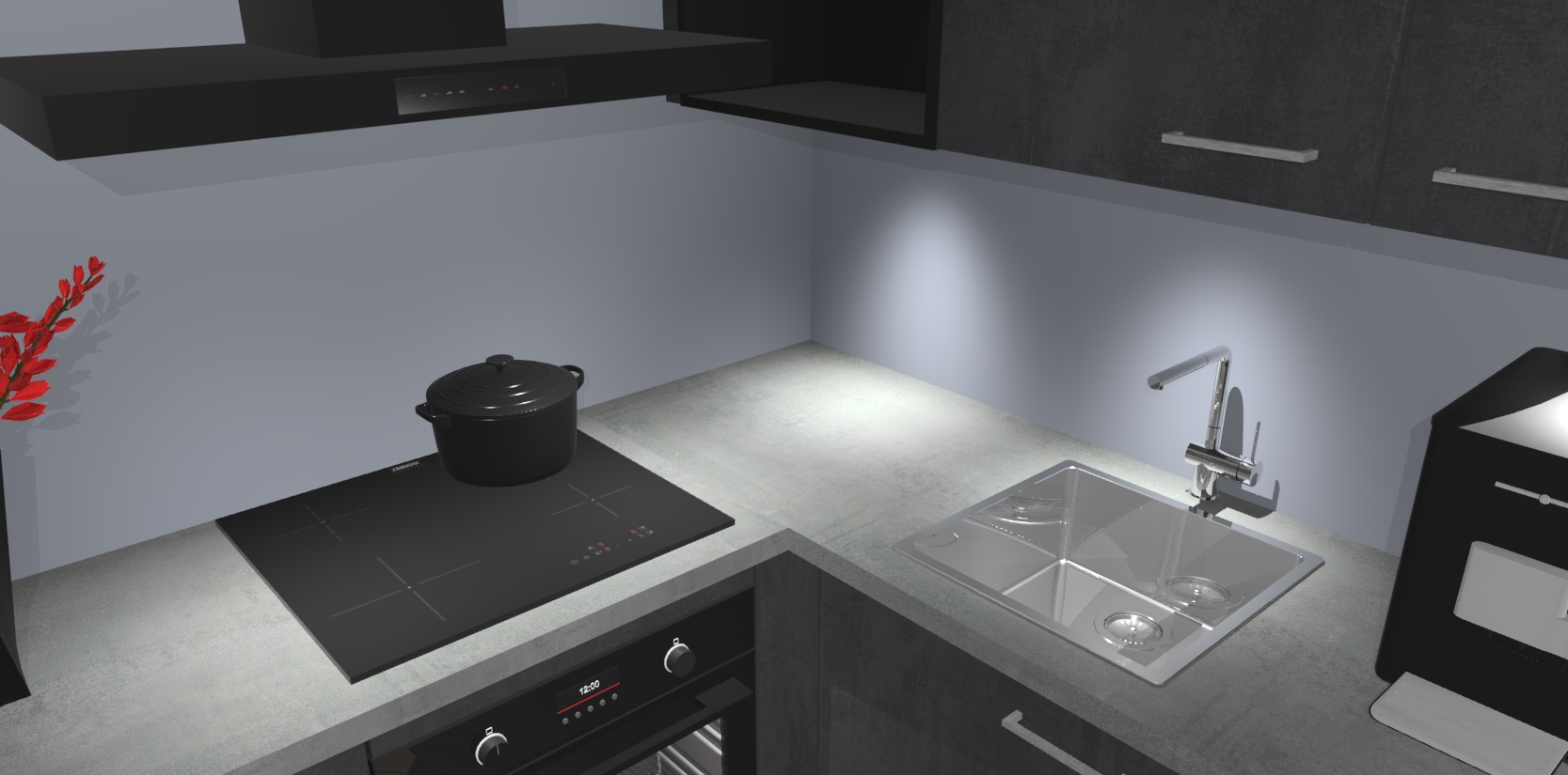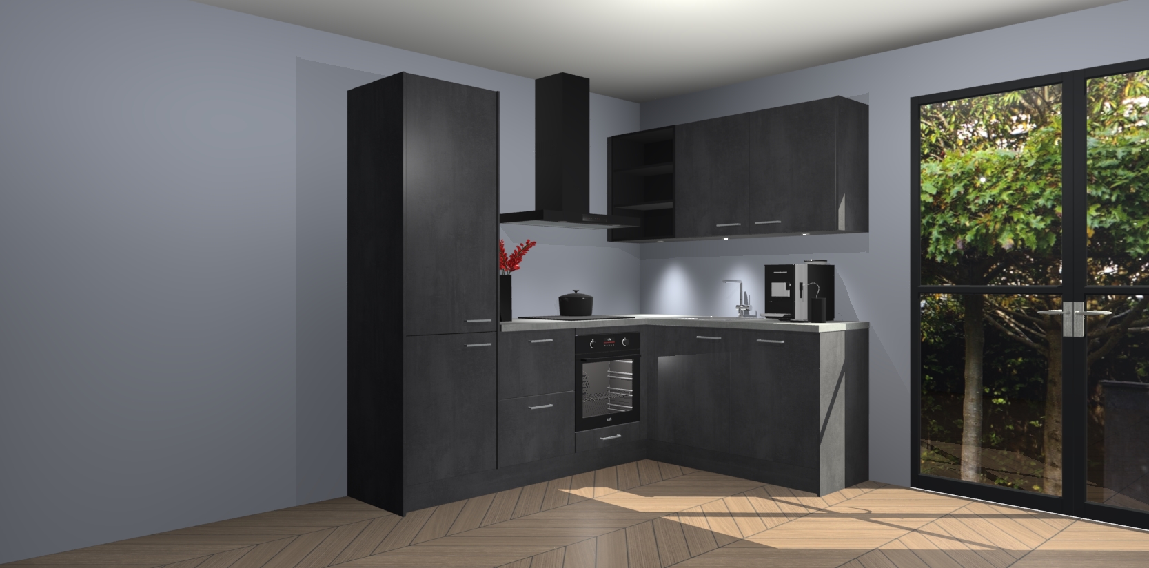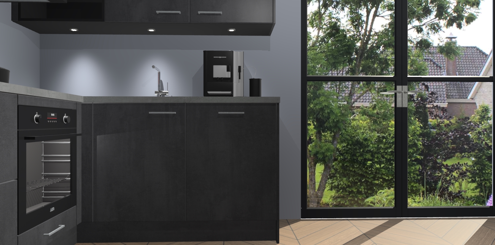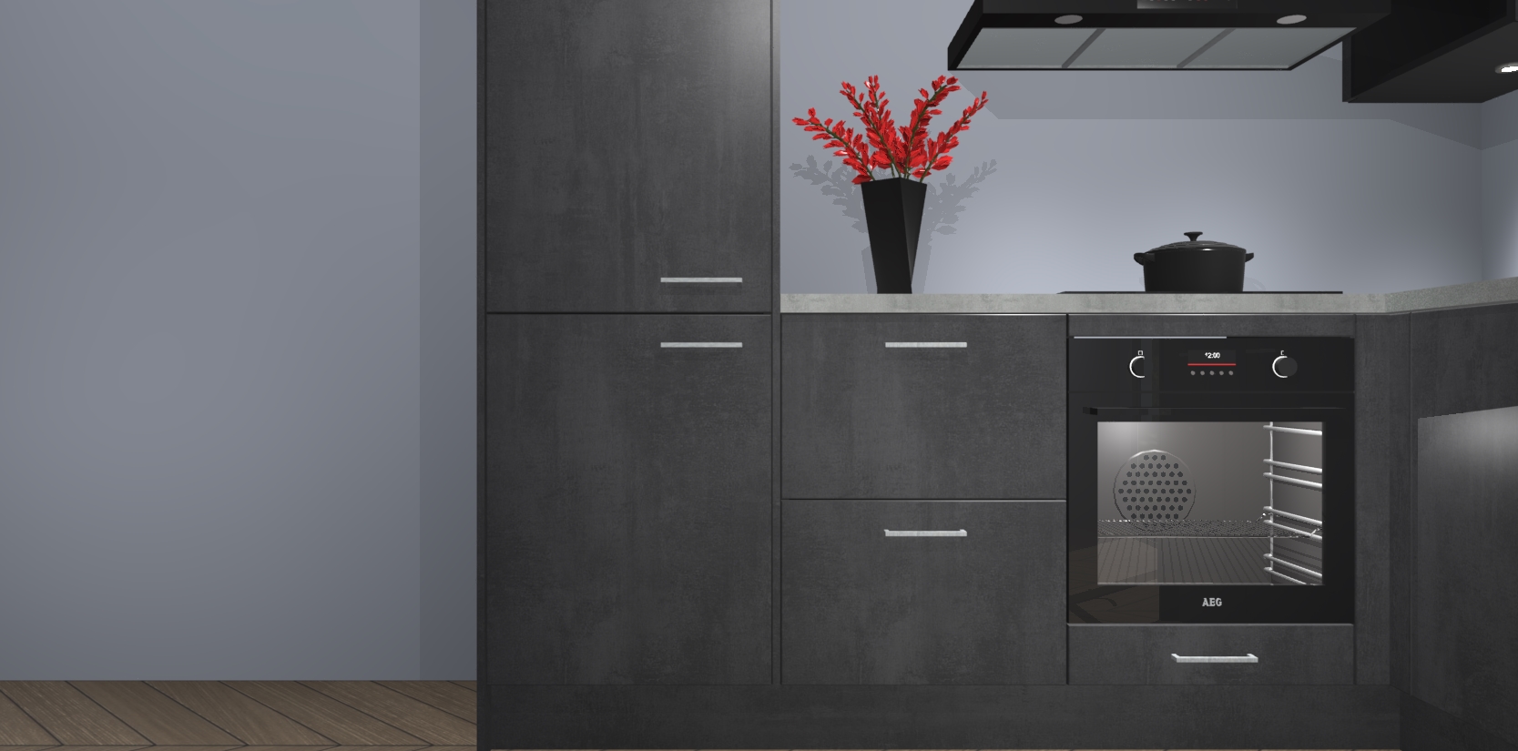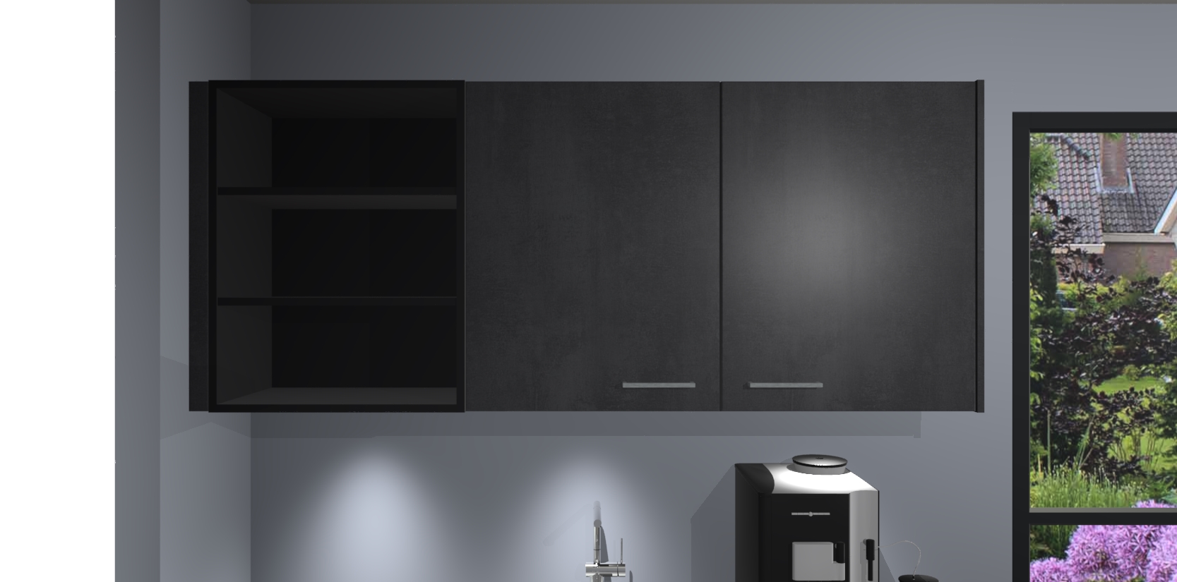 Wauw, dit is de Beton Zwarte keuken Pilsen! U kunt gerust zeggen dat u elegantie combineert met functionaliteit met deze keuken. Met een modern en chique ontwerp is de keuken precies wat u nodig heeft om uw ruimte te verfraaien. De binnenzijde van de kasten is in dezelfde donkere kleur als de buitenzijde voor een uniforme look, compleet met softclose-kasten die stil sluiten.