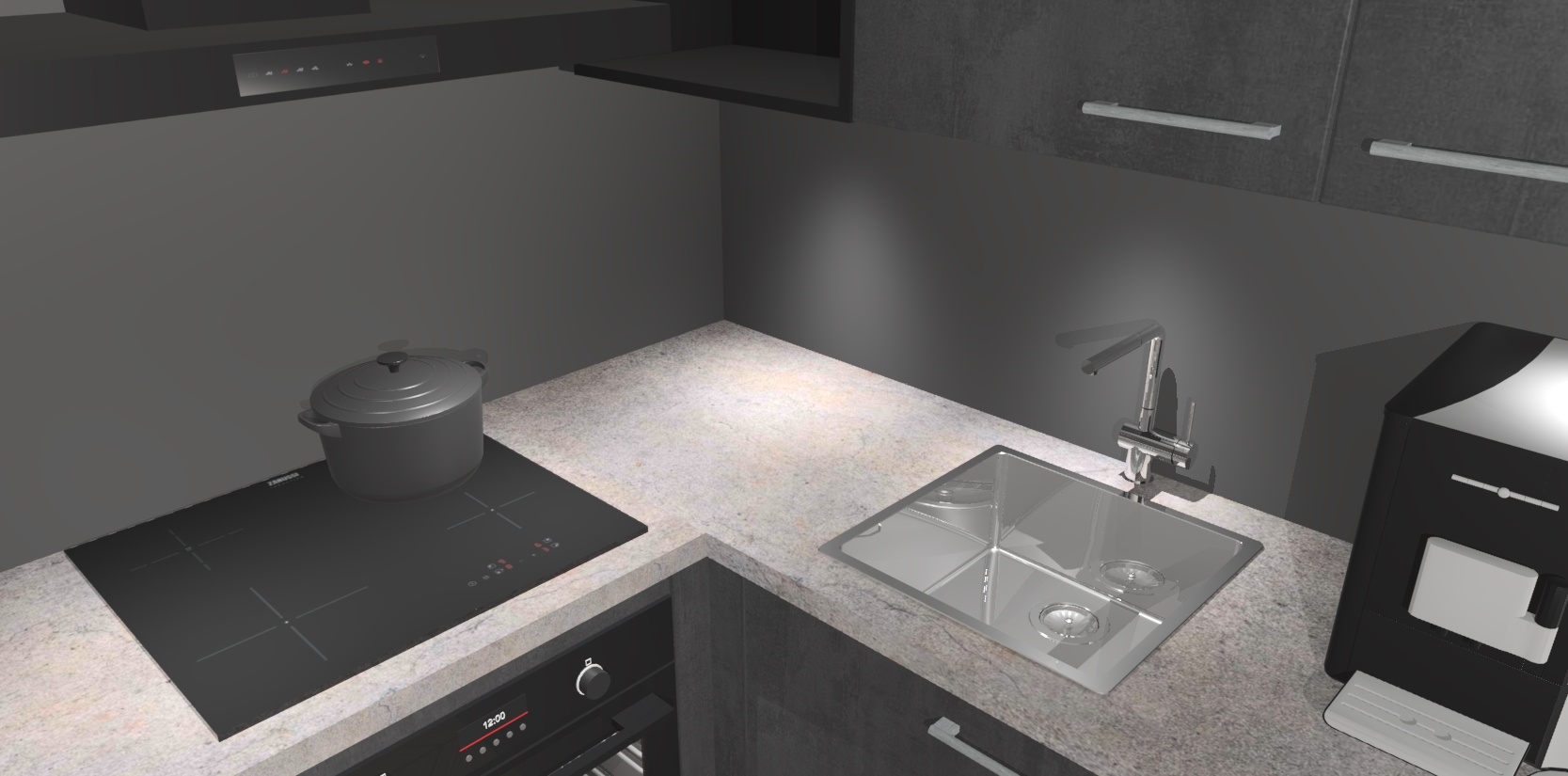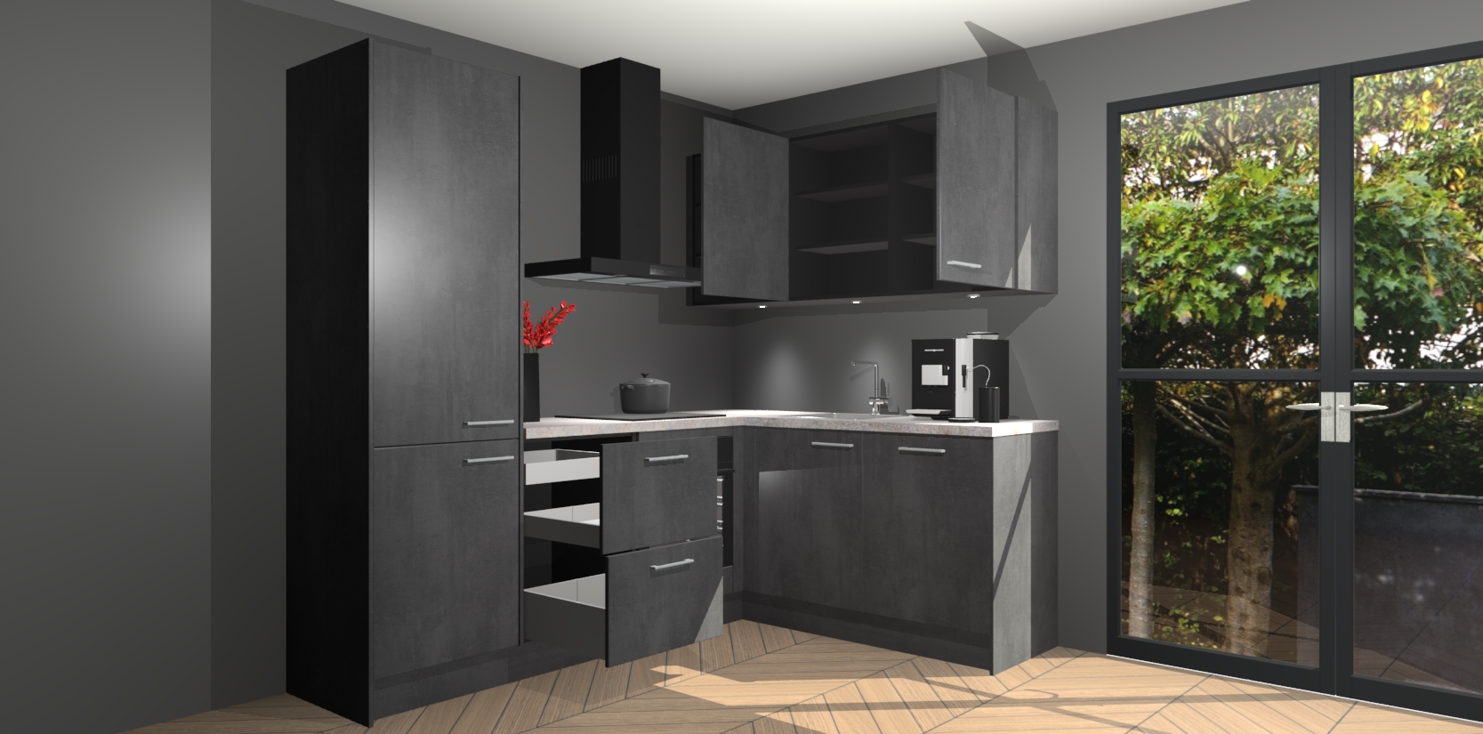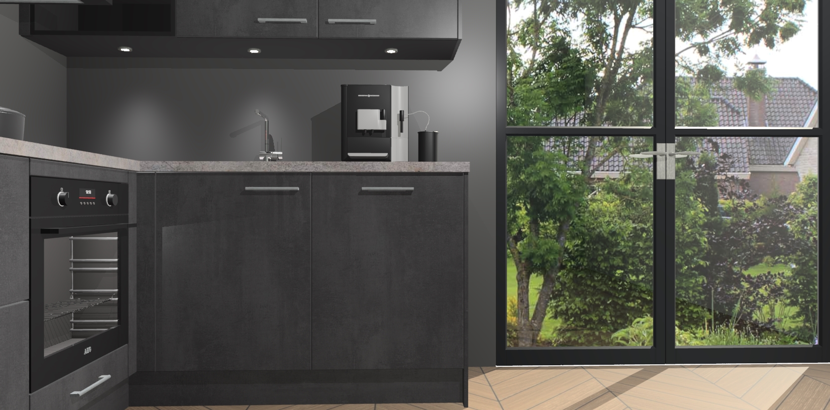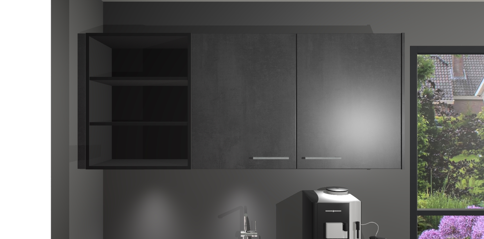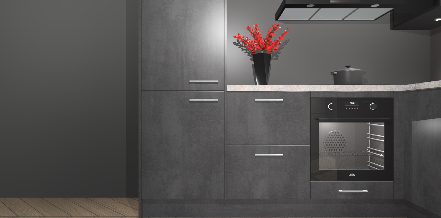 Wauw, dit is de Beton Zwarte keuken Pilsen! U kunt gerust zeggen dat u elegantie combineert met functionaliteit met deze keuken. Met een modern en chique ontwerp is de keuken precies wat u nodig heeft om uw ruimte te verfraaien. De binnenzijde van de kasten is in dezelfde donkere kleur als de buitenzijde voor een uniforme look, compleet met softclose-kasten die stil sluiten.