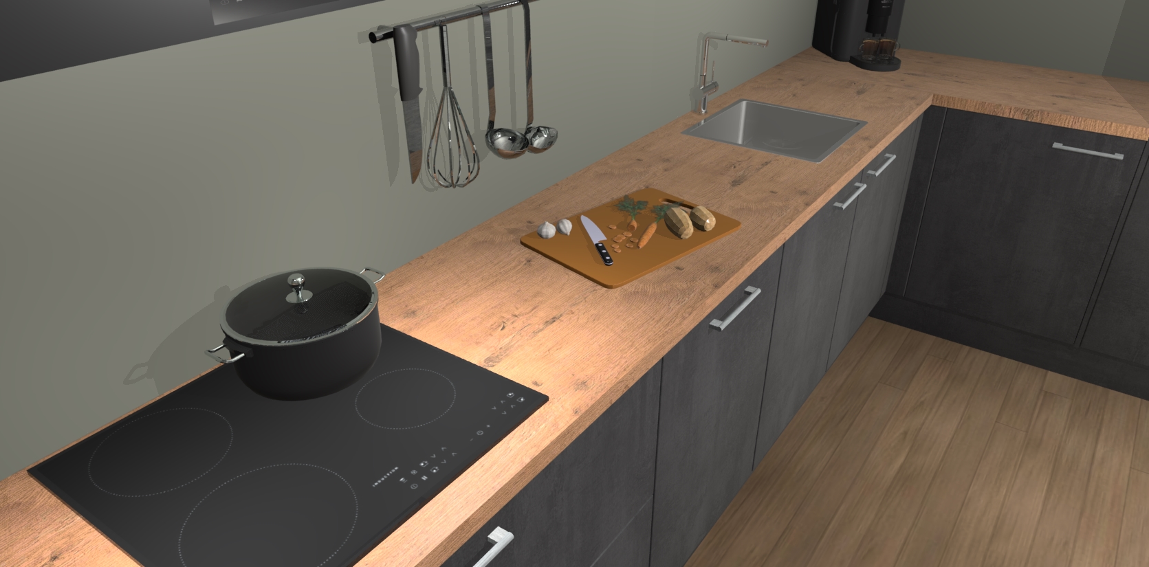 - Bij een hoekwerkblad zijn de hoeken in gevreesd en op maat gemaakt