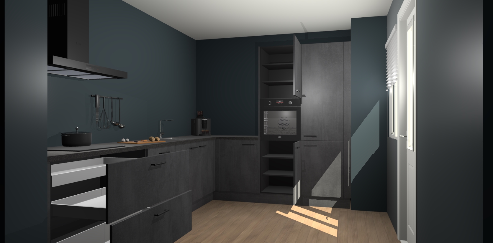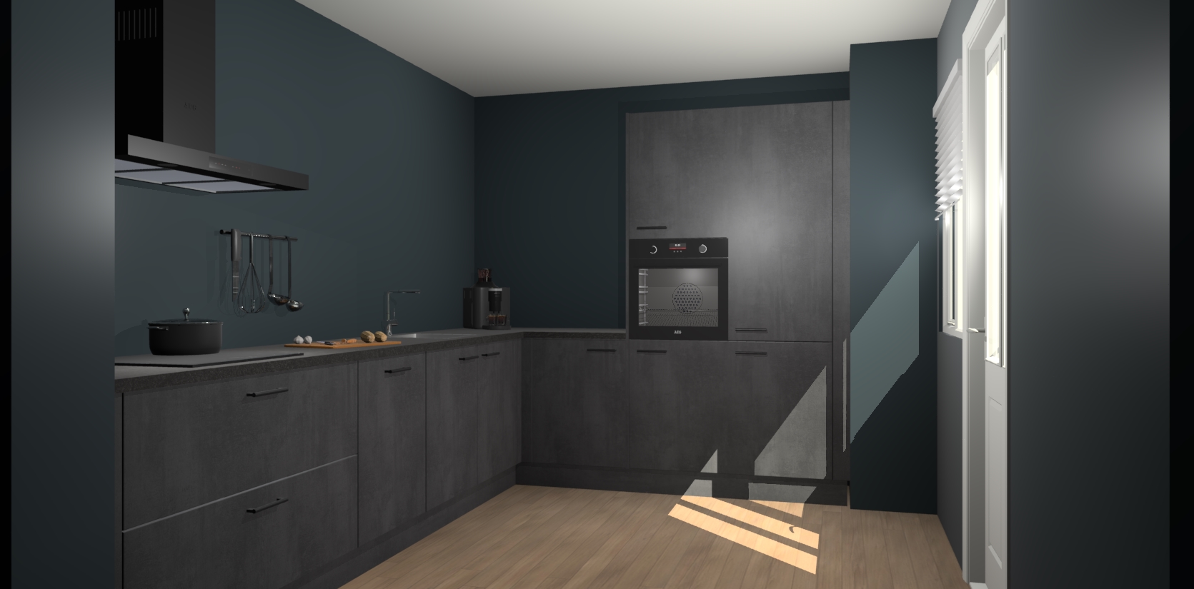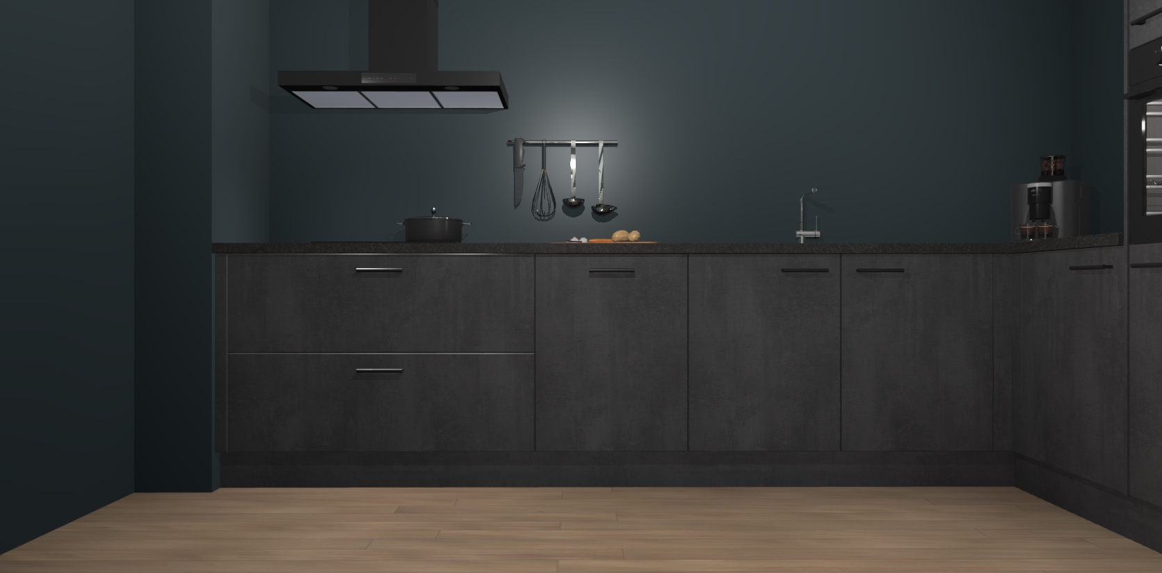 Welkom bij de Beton Zwarte keuken Portland. Deze prachtige keuken zal de komende jaren het middelpunt van de belangstelling in uw huis zijn. Uitgerust met vijf inbouwapparaten komt u nooit kookgereedschap tekort. Bovendien geeft de warme houtlook elke ruimte een uitnodigende en tijdloze uitstraling.