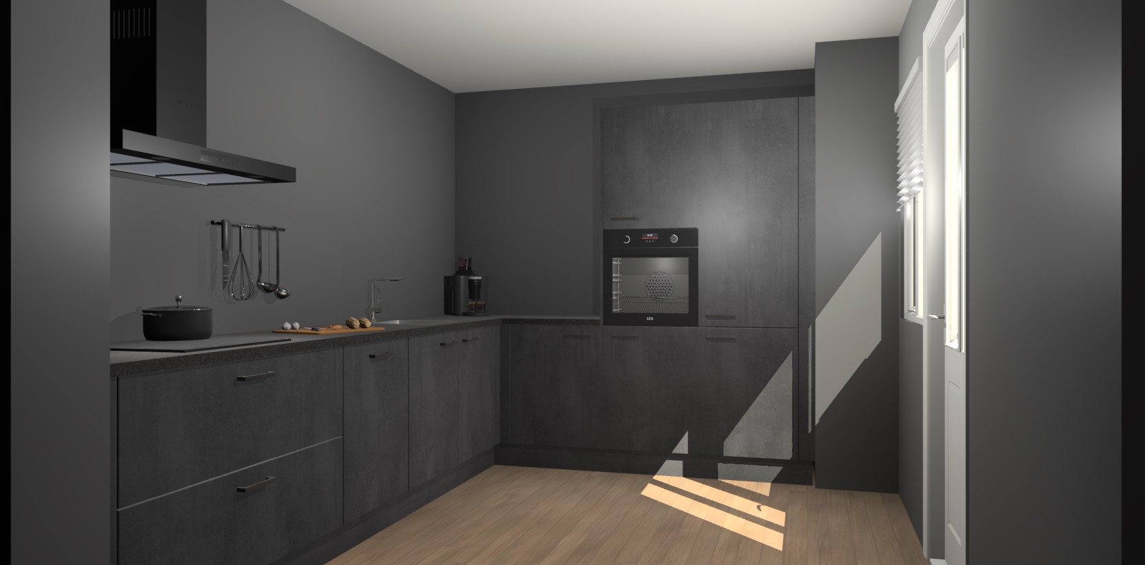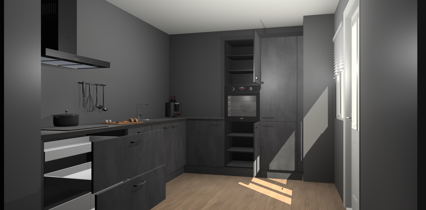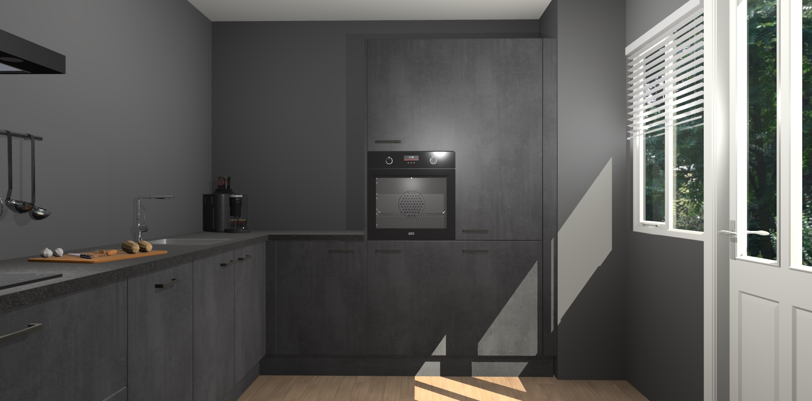 Welkom bij de Beton Zwarte keuken Portland. Deze prachtige keuken zal de komende jaren het middelpunt van de belangstelling in uw huis zijn. Uitgerust met vijf inbouwapparaten komt u nooit kookgereedschap tekort. Bovendien geeft de warme houtlook elke ruimte een uitnodigende en tijdloze uitstraling.