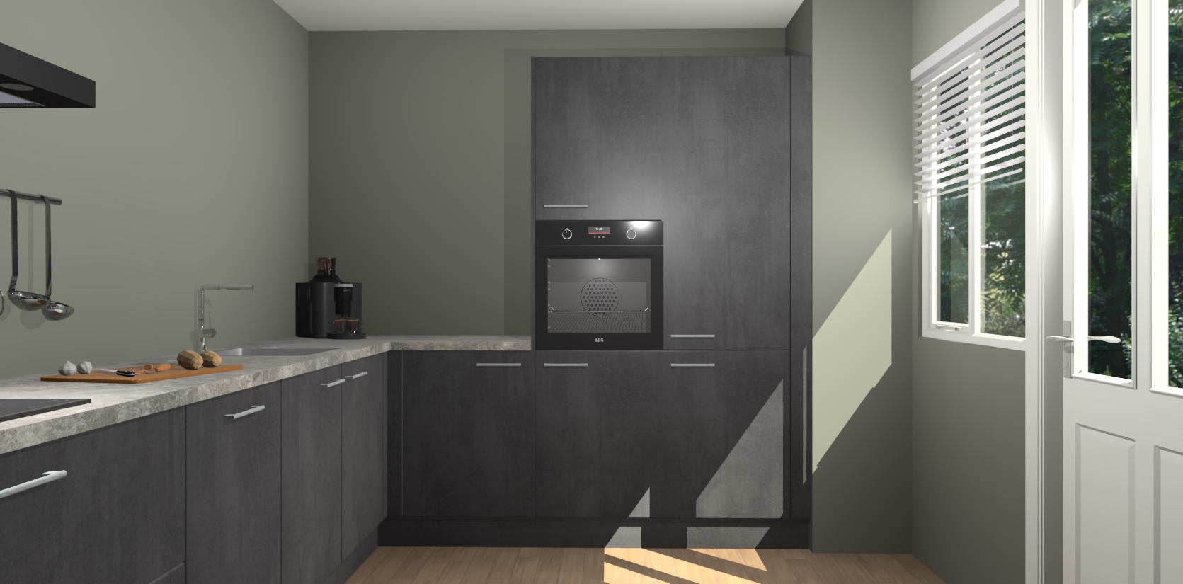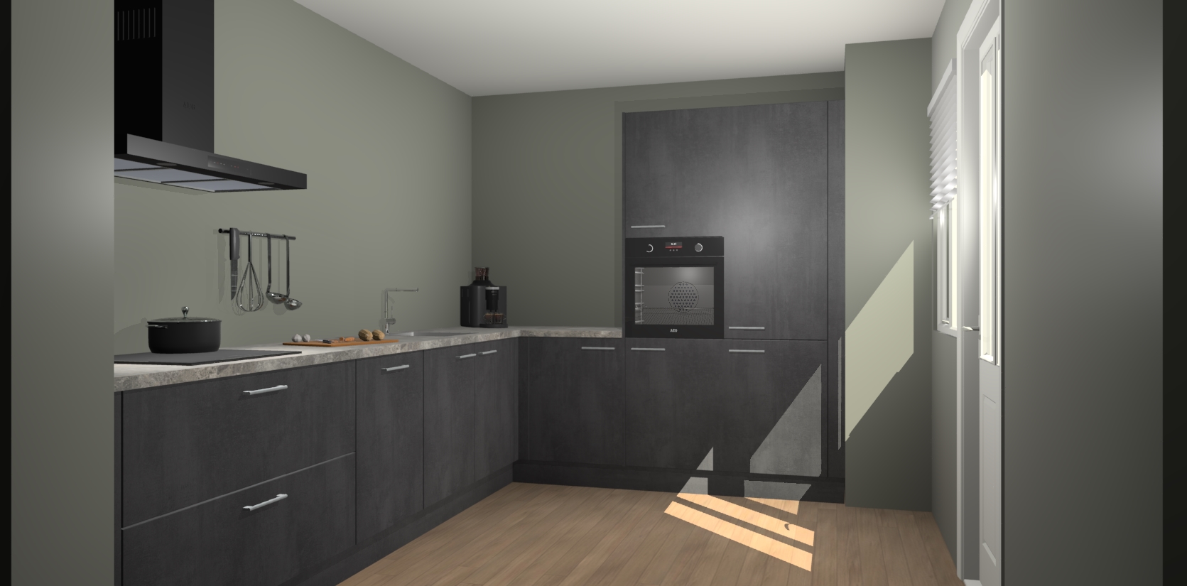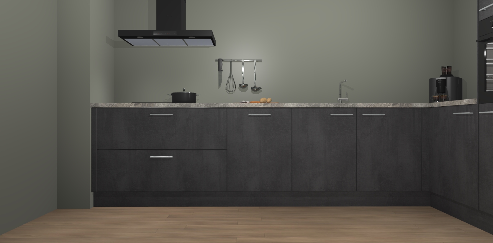 Welkom bij de Beton Zwarte keuken Portland. Deze prachtige keuken zal de komende jaren het middelpunt van de belangstelling in uw huis zijn. Uitgerust met vijf inbouwapparaten komt u nooit kookgereedschap tekort. Bovendien geeft de warme houtlook elke ruimte een uitnodigende en tijdloze uitstraling.