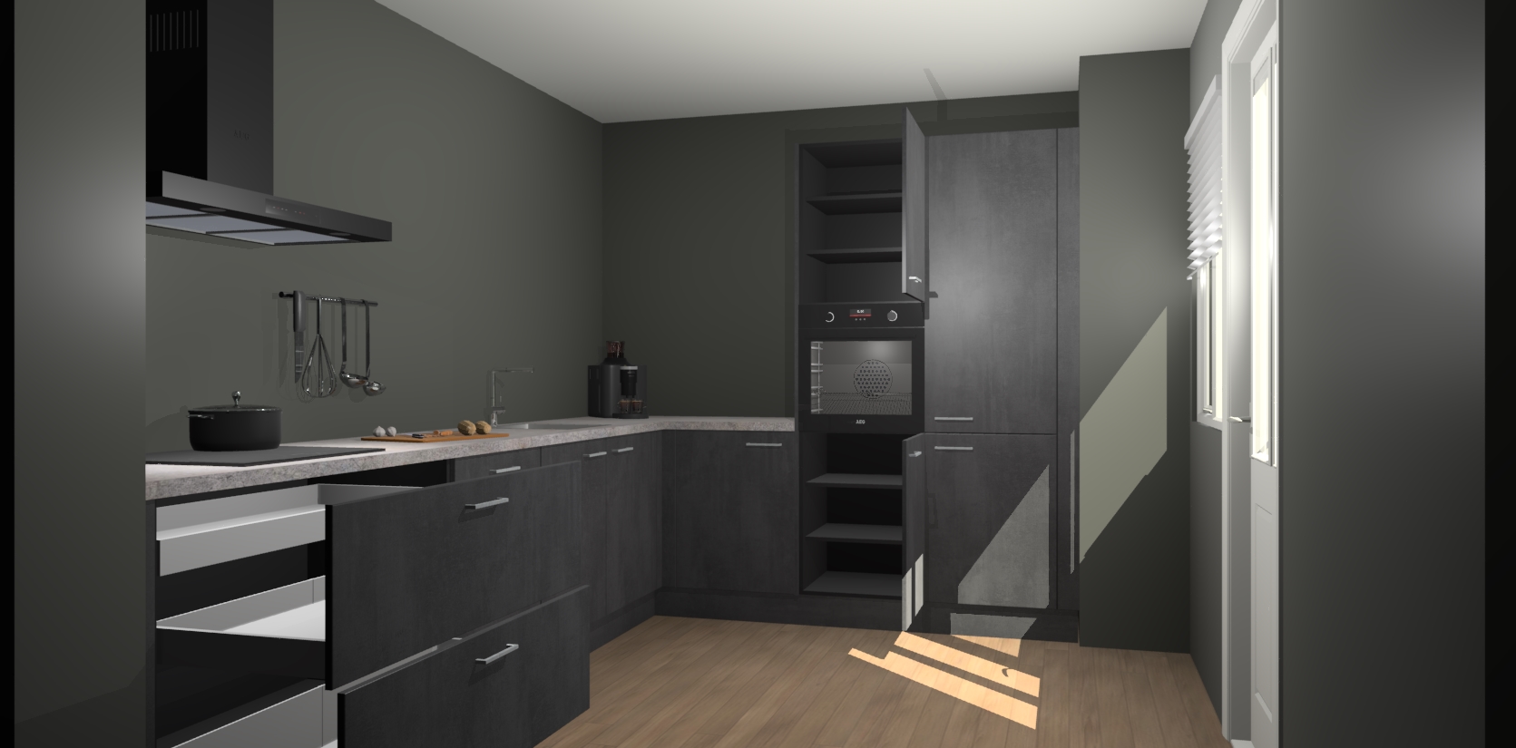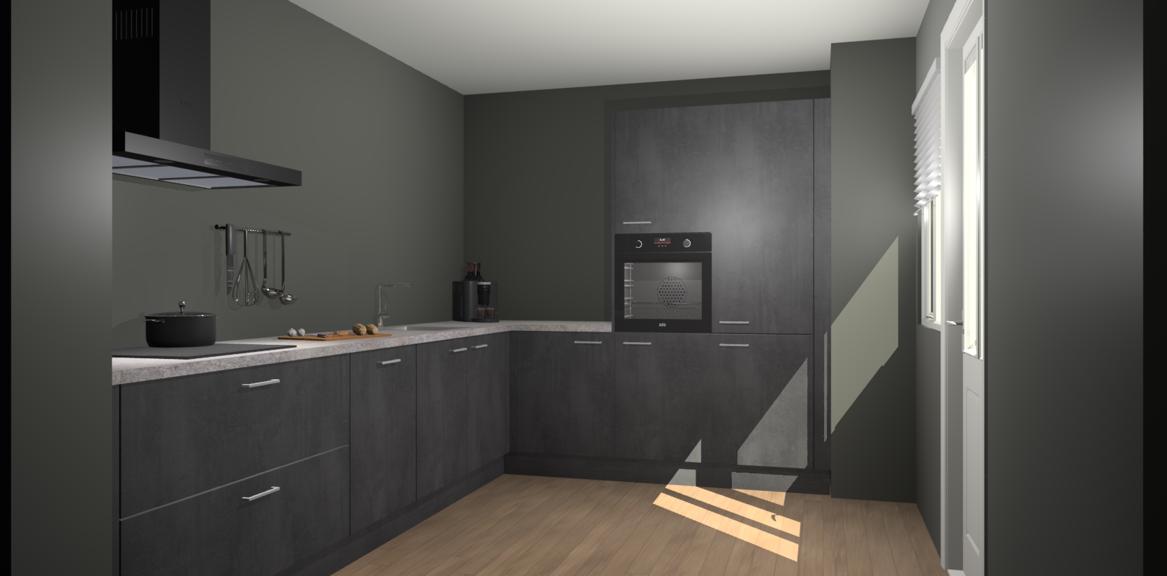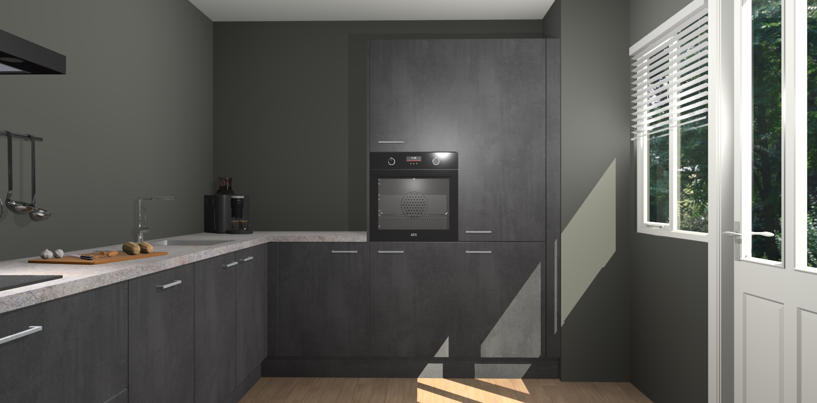 Welkom bij de Beton Zwarte keuken Portland. Deze prachtige keuken zal de komende jaren het middelpunt van de belangstelling in uw huis zijn. Uitgerust met vijf inbouwapparaten komt u nooit kookgereedschap tekort. Bovendien geeft de warme houtlook elke ruimte een uitnodigende en tijdloze uitstraling.