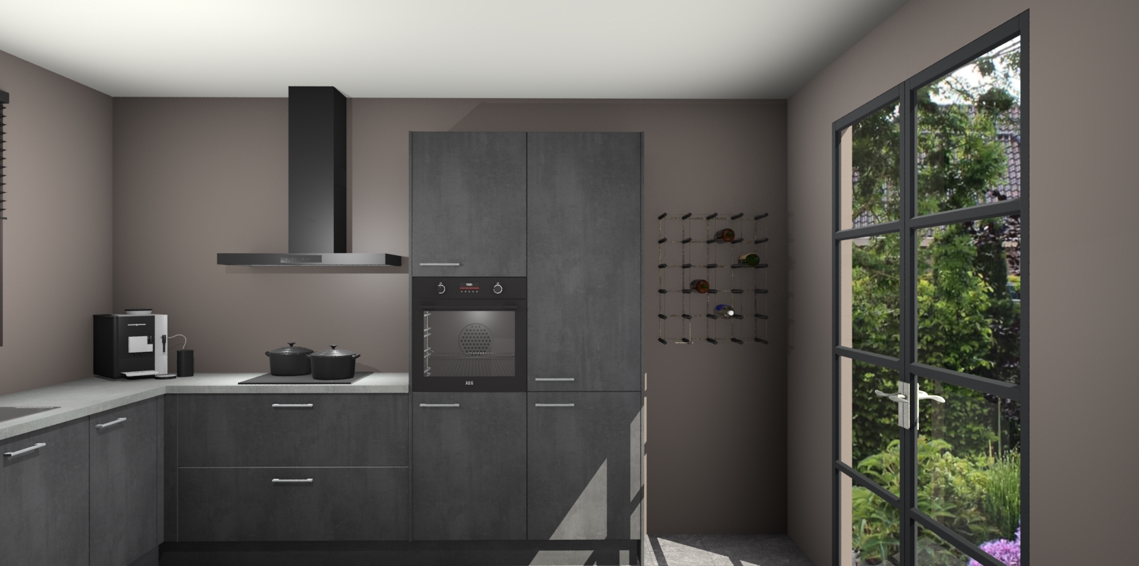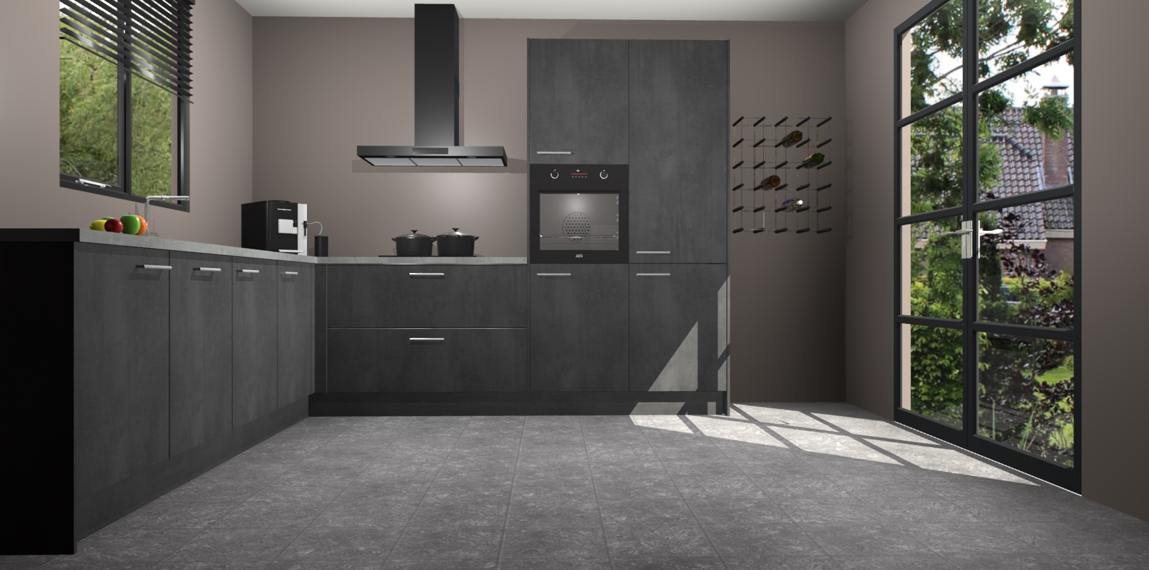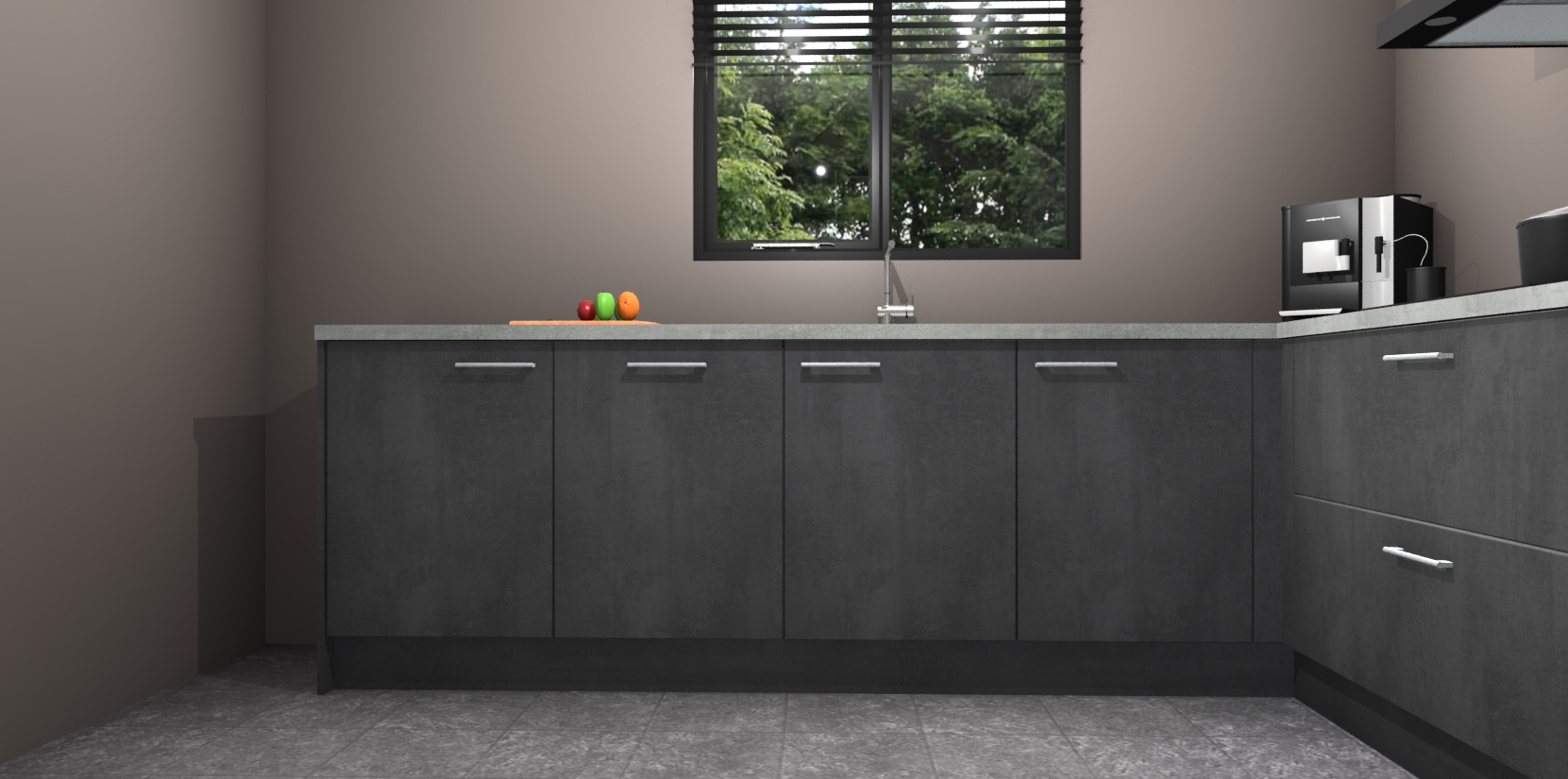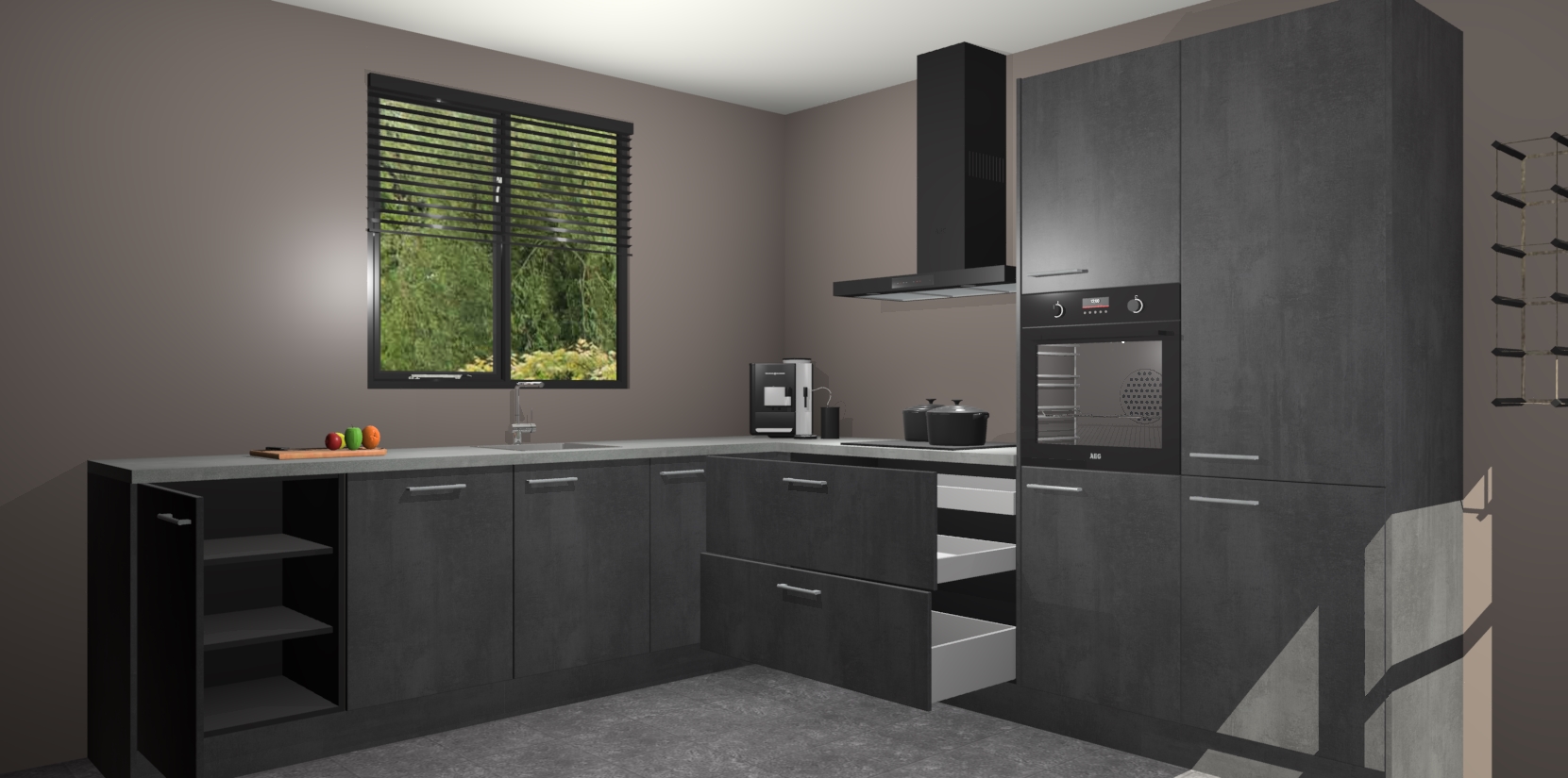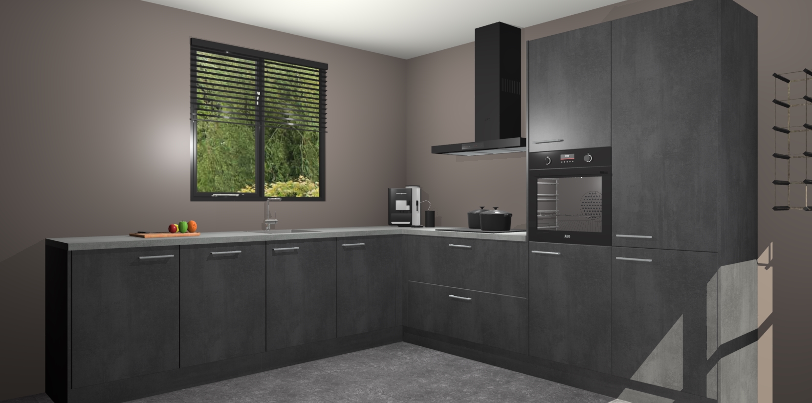 De Beton Zwarte keuken Porto heeft 5 ingebouwde apparaten - een oven, inductiekookplaat, afzuigkap, vaatwasser en koelkast - waarmee u in een handomdraai heerlijke gerechten bereidt. Soft-close deuren zorgen voor nog meer functionaliteit en gemak. En dit alles voor een onverslaanbaar vaste prijs. En als u nu bestelt, duurt de levering maar 7 weken! Wat nog ongelooflijker is, is dat onze kasten voor gemonteerd worden geleverd.