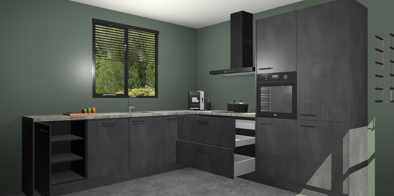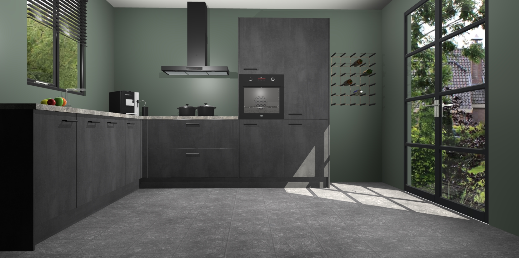 Als u op zoek bent naar stijl in combinatie met optimale efficiëntie, dan is de Beton Zwarte keuken Porto de perfecte keuze voor elk modern huis. Plaats vandaag nog uw bestelling en begin met koken in uw nieuwe keuken voor u het weet!