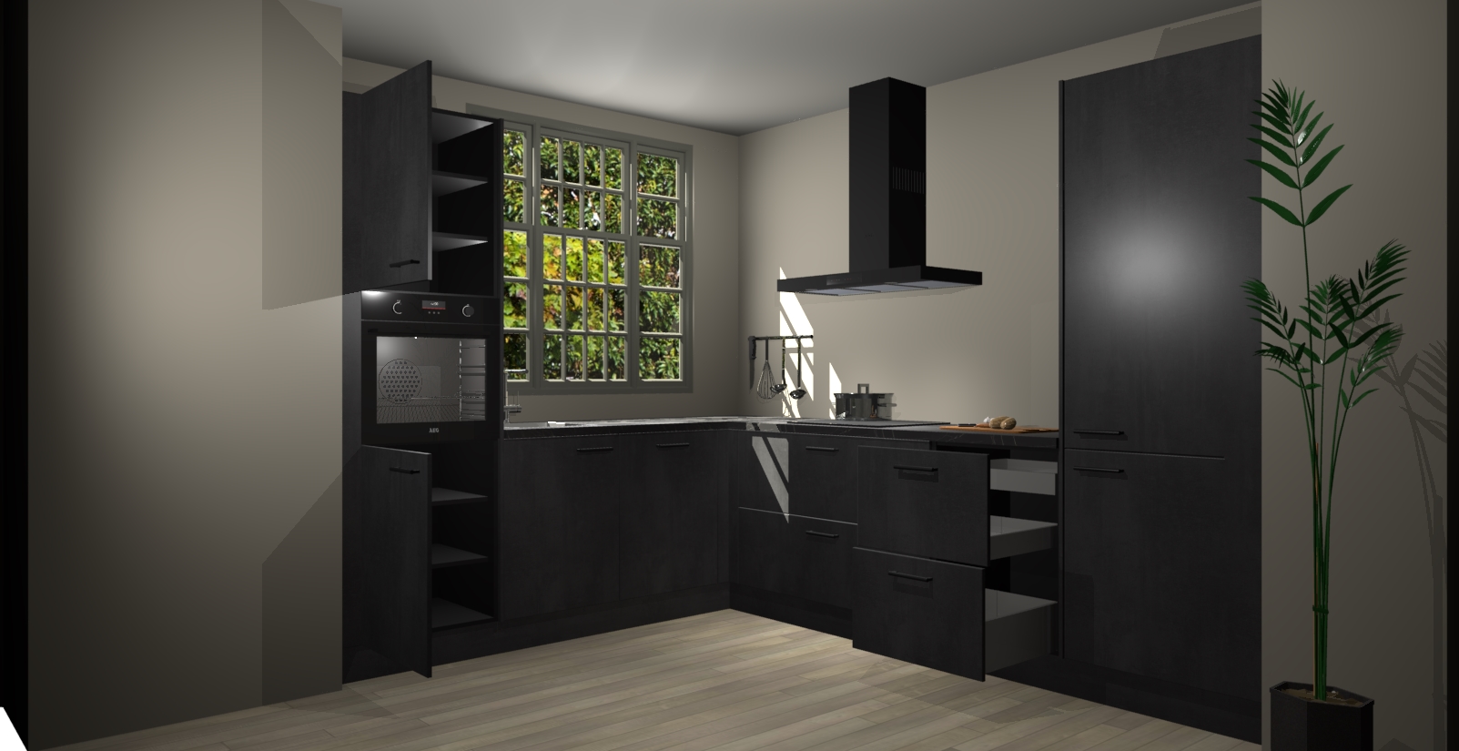 Wij presenteren de revolutie in keukens: de beton zwarte keuken Radom. Met modern design, een tijdloos uiterlijk en kasten die al voor gemonteerd worden geleverd, laat deze stijlvolle keuken uw kookervaring op een hele nieuwe manier transformeren.