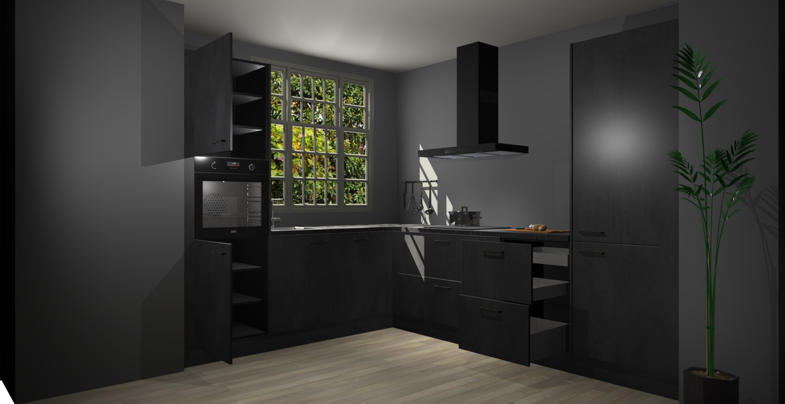 Met een modern, tijdloos design en ruime opslagruimte, zult u zich in no-time thuis voelen in uw nieuwe keuken. Uw leven wordt eenvoudiger met de soft-close deuren die voor het ultieme stille comfort zorgen - geen geluid dat u stoort terwijl u kookt. Ook is de keuken voorzien van 5 ingebouwde apparaten: een oven, inductie kookplaat, afzuigkap, vaatwasser en koelkast. Deze kunnen gemakkelijk na bestelling worden bijgewerkt naar AEG - waardoor uw luxe ervaring compleet is.