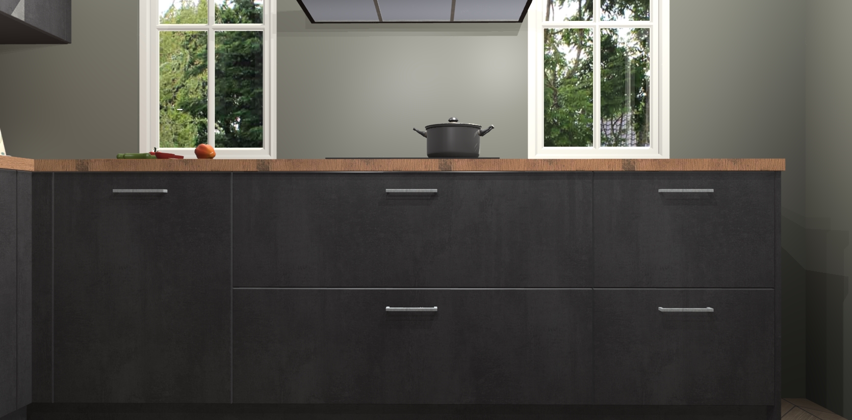 In deze box zijn alle kleuren verzameld van de deuren en werkbladen. Vraag de gratis kleurenbox aan en kijk thuis rustig verder!