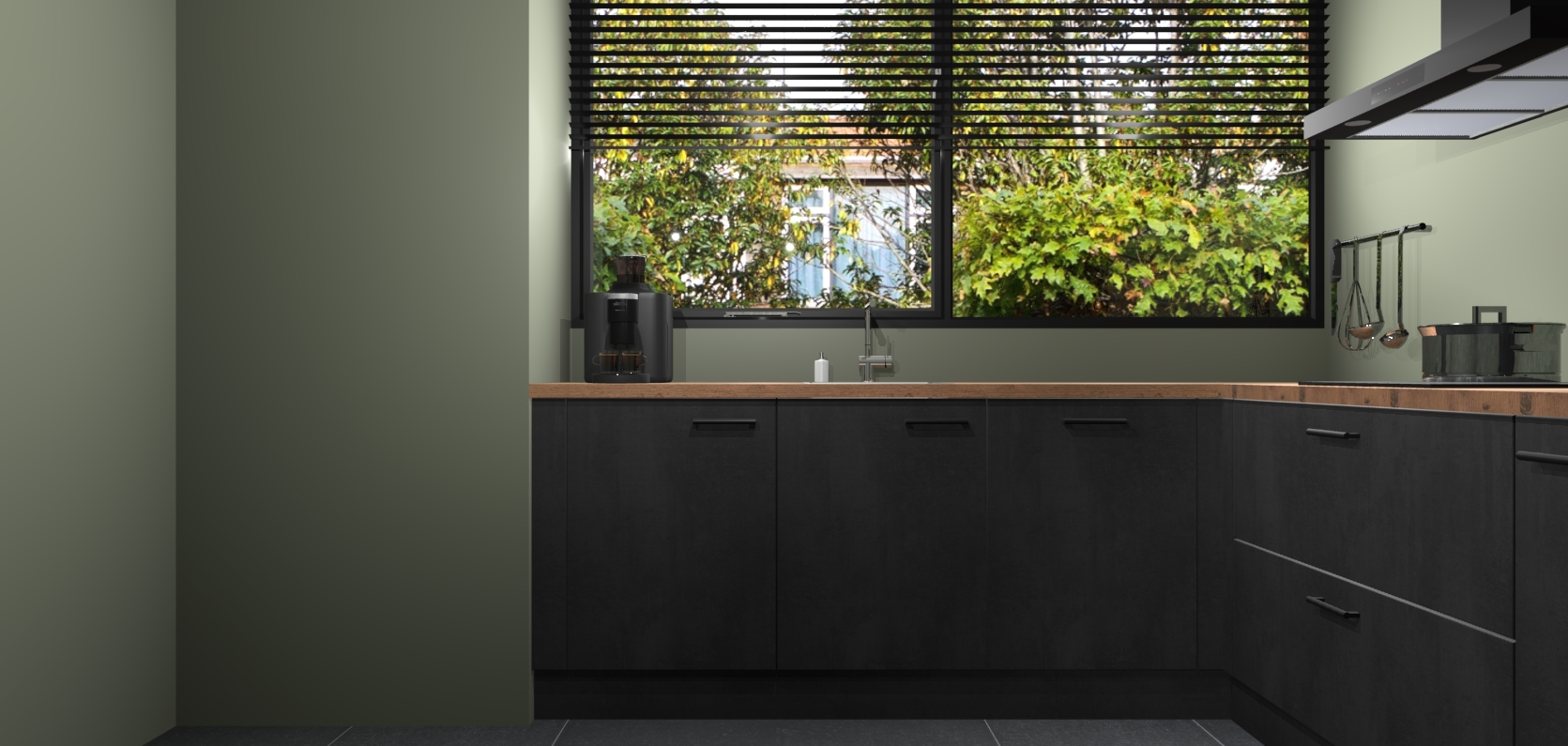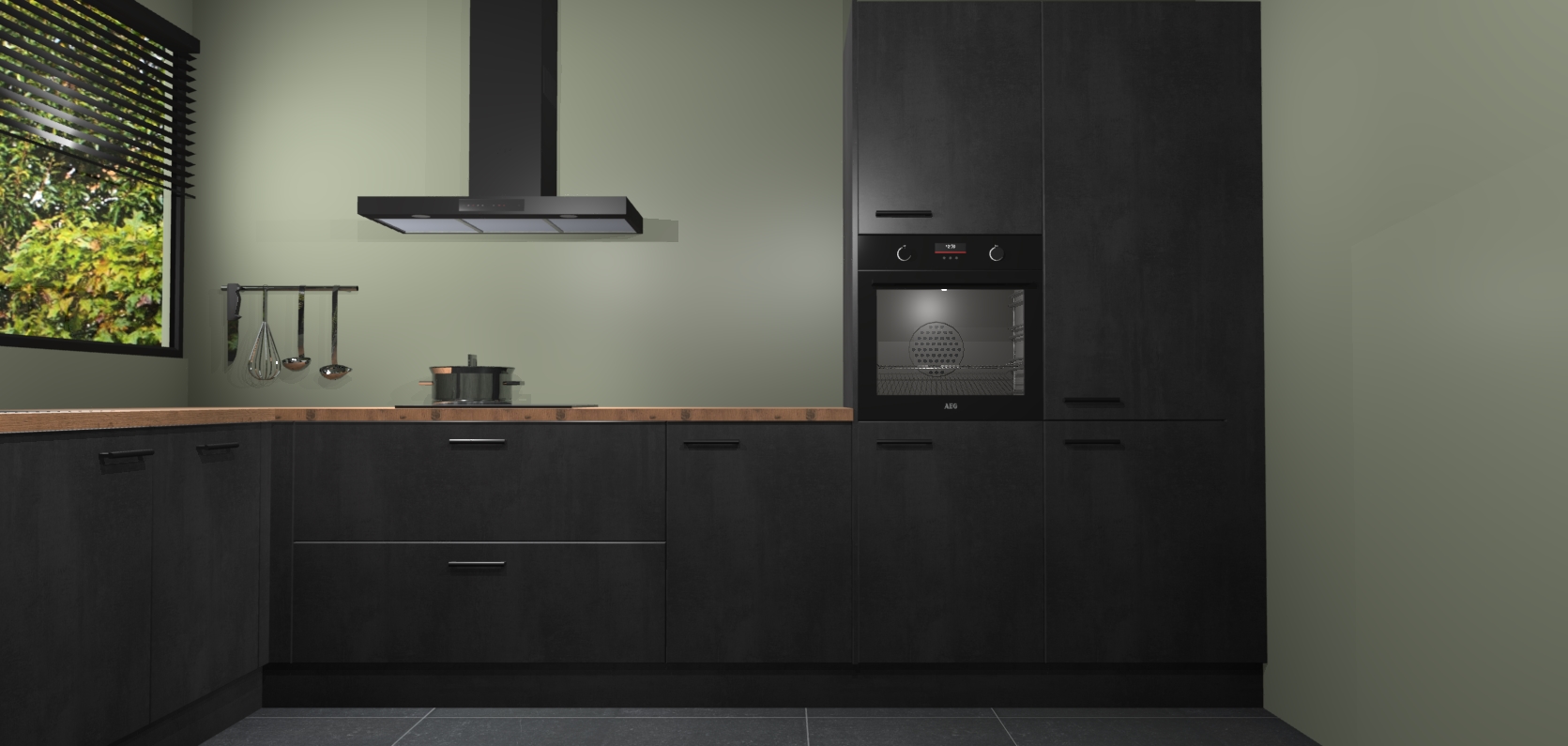 Wij presenteren de revolutie in keukens: de Beton Zwarte keuken Rhodos. Met modern design, een tijdloos uiterlijk en kasten die al voor gemonteerd worden geleverd, laat deze stijlvolle keuken uw kookervaring op een hele nieuwe manier transformeren.