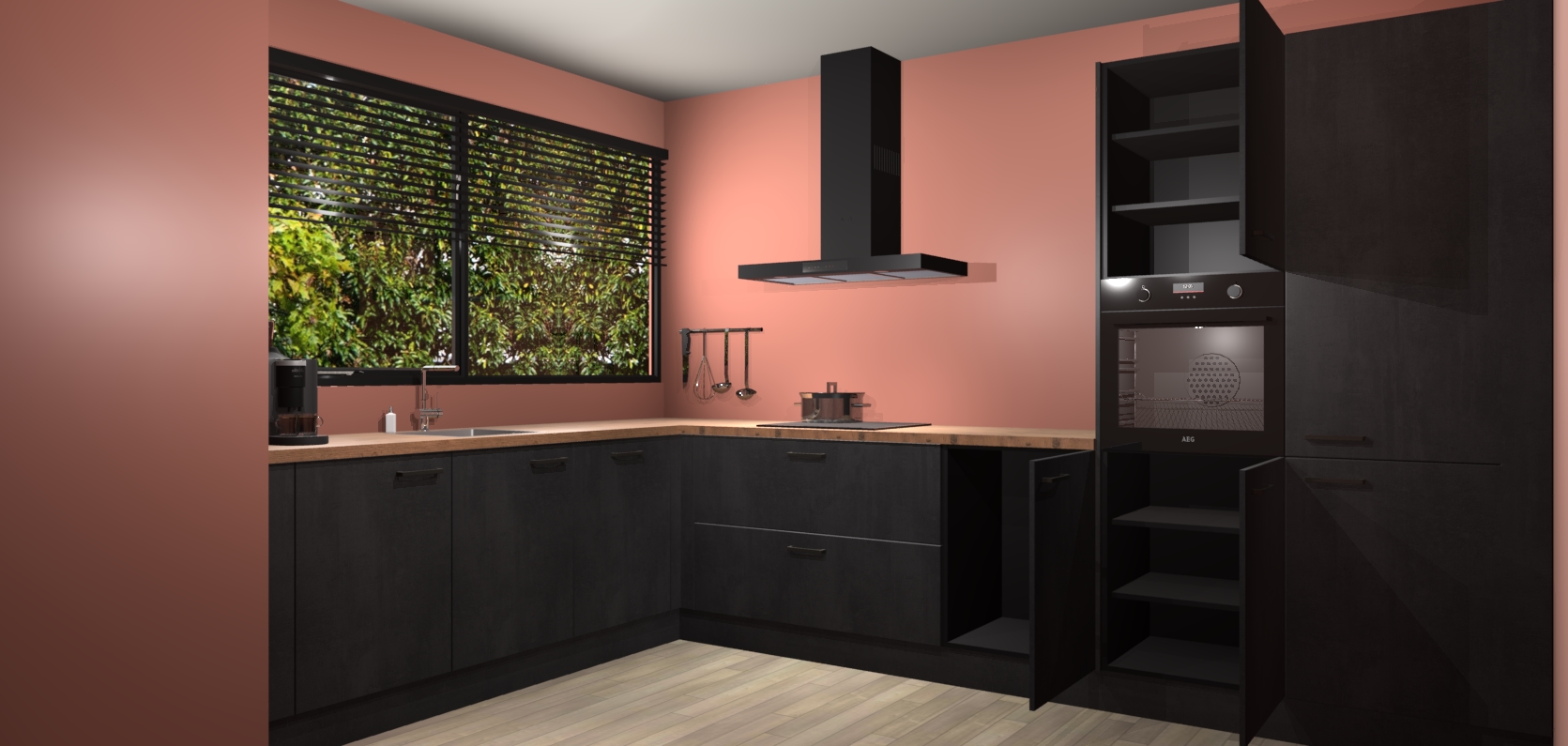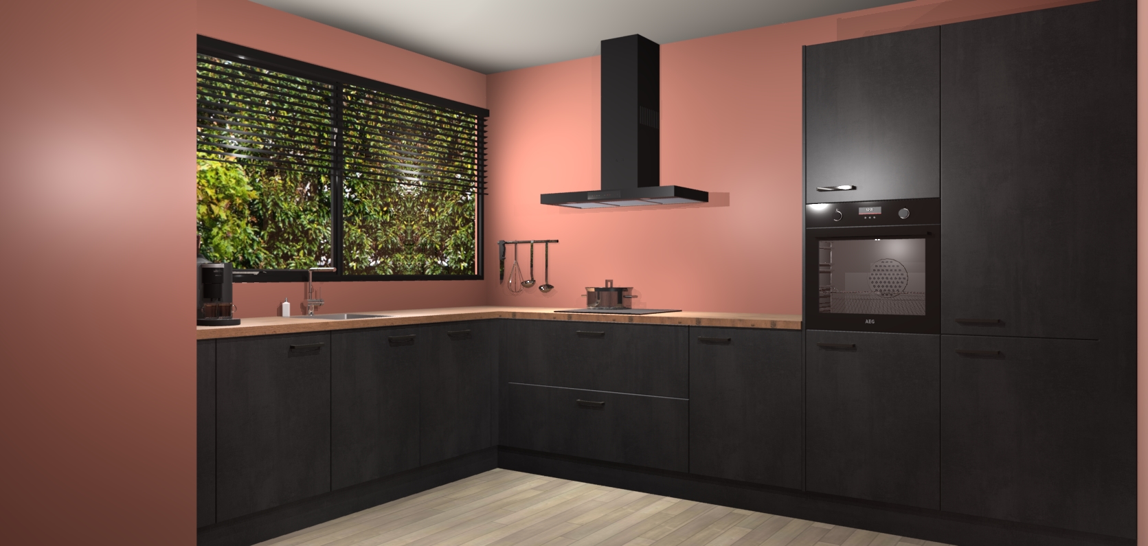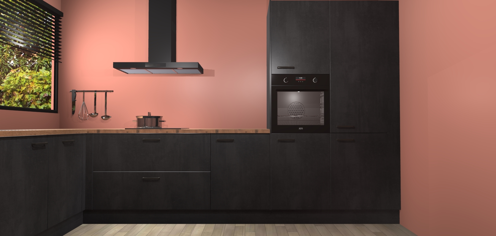 Wij presenteren de revolutie in keukens: de Beton Zwarte keuken Rhodos. Met modern design, een tijdloos uiterlijk en kasten die al voor gemonteerd worden geleverd, laat deze stijlvolle keuken uw kookervaring op een hele nieuwe manier transformeren.