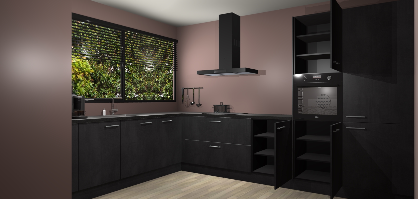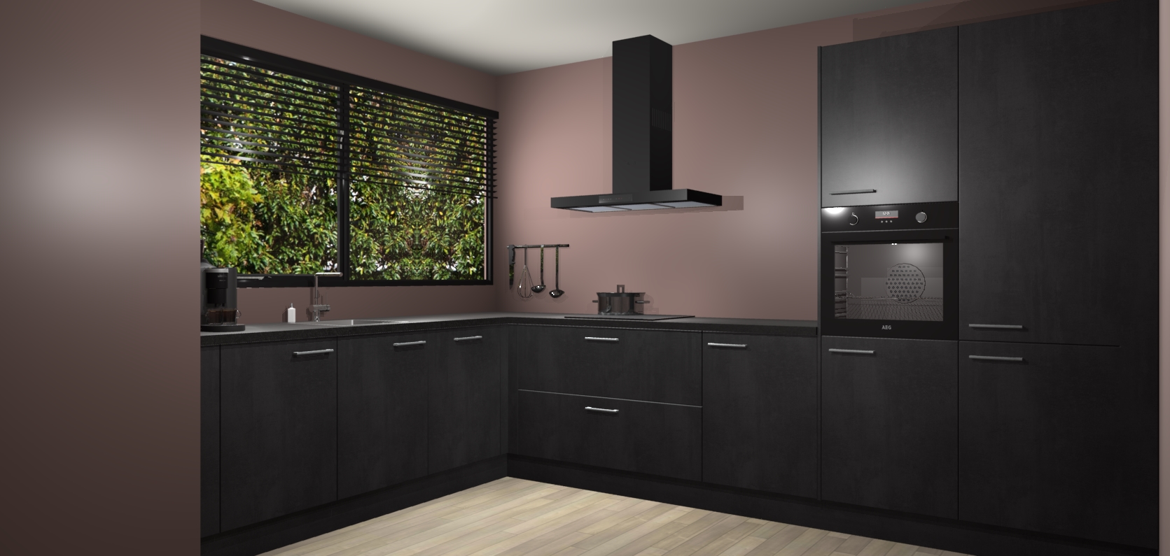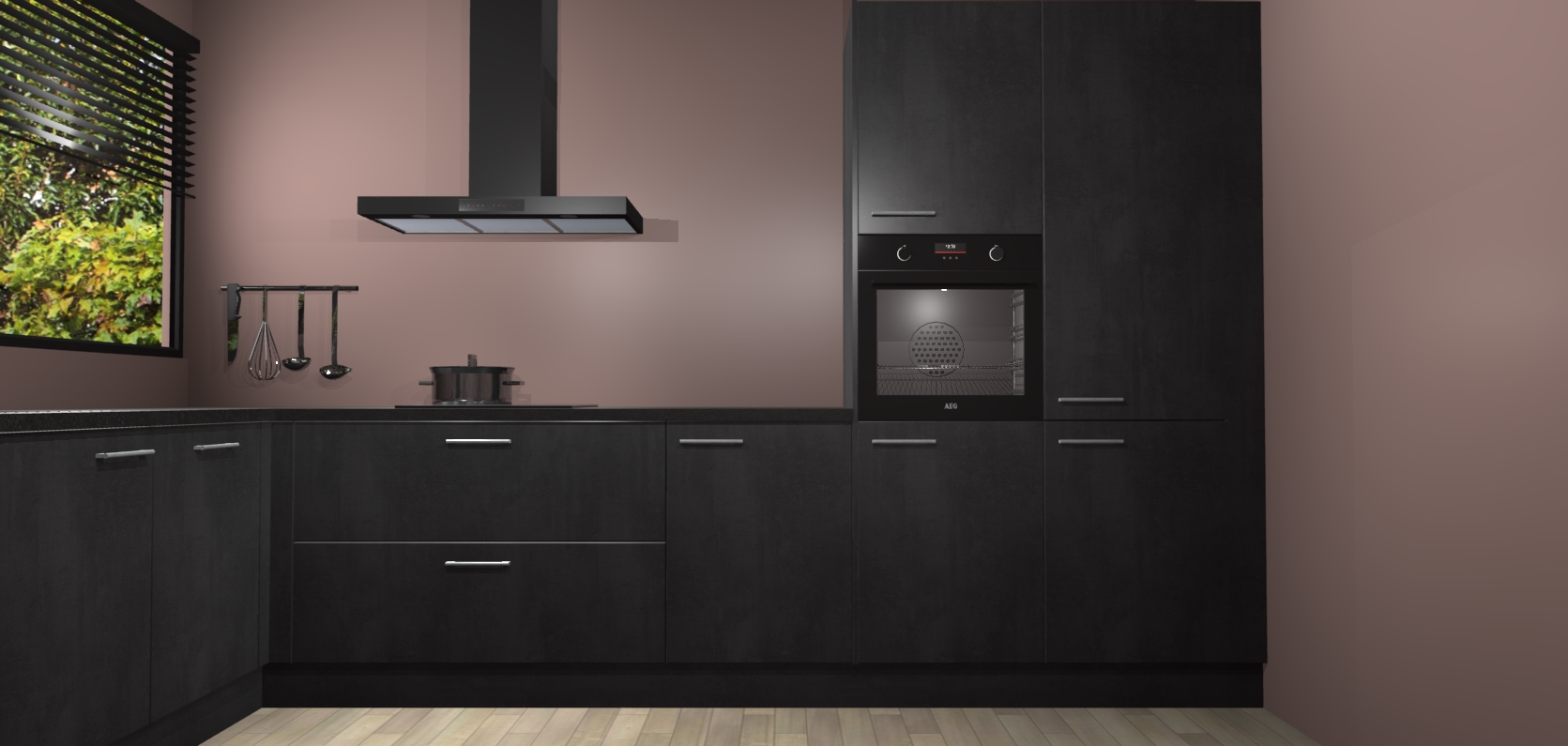 Wij presenteren de revolutie in keukens: de Beton Zwarte keuken Rhodos. Met modern design, een tijdloos uiterlijk en kasten die al voor gemonteerd worden geleverd, laat deze stijlvolle keuken uw kookervaring op een hele nieuwe manier transformeren.