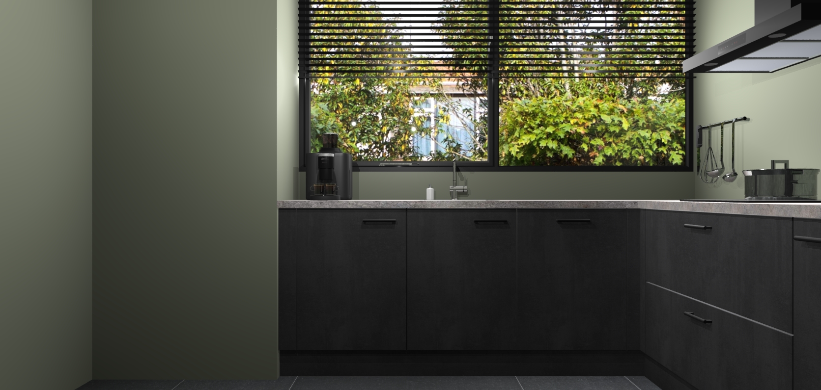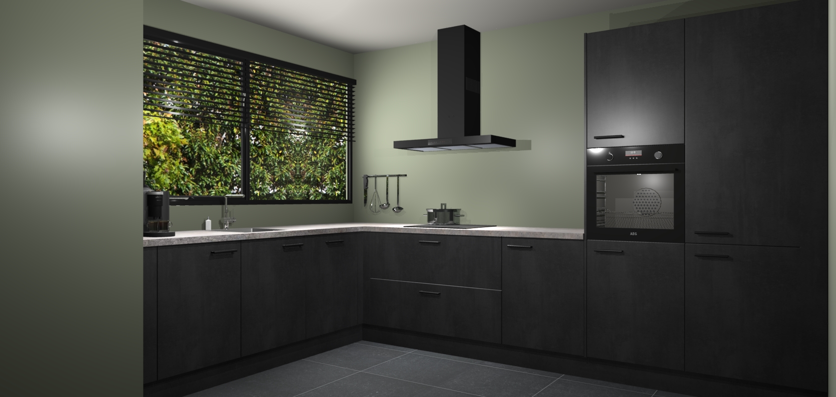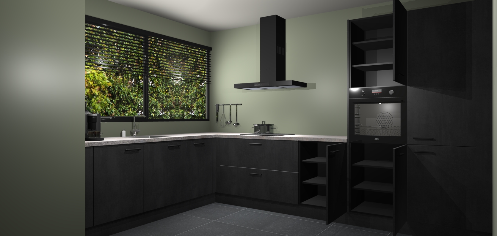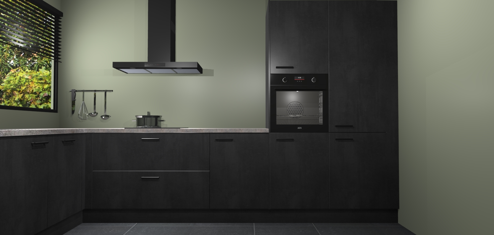 Wij presenteren de revolutie in keukens: de Beton Zwarte keuken Rhodos. Met modern design, een tijdloos uiterlijk en kasten die al voor gemonteerd worden geleverd, laat deze stijlvolle keuken uw kookervaring op een hele nieuwe manier transformeren.