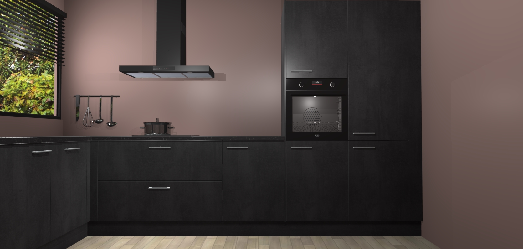 Wij presenteren de revolutie in keukens: de Beton Zwarte keuken Rhodos. Met modern design, een tijdloos uiterlijk en kasten die al voor gemonteerd worden geleverd, laat deze stijlvolle keuken uw kookervaring op een hele nieuwe manier transformeren.
