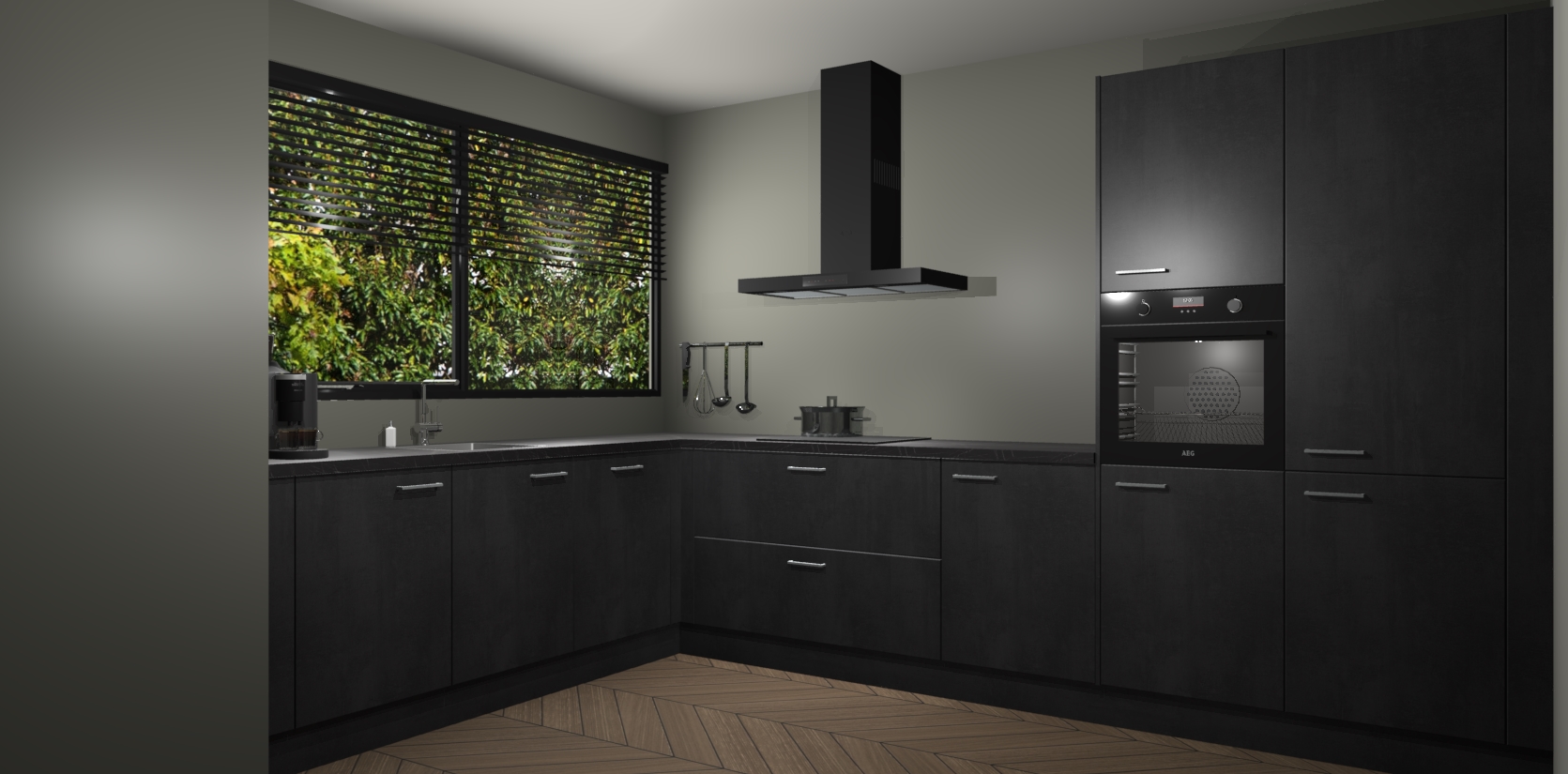 Met een modern, tijdloos design en ruime opslagruimte, zult u zich in no-time thuis voelen in uw nieuwe keuken. Uw leven wordt eenvoudiger met de soft-close deuren die voor het ultieme stille comfort zorgen - geen geluid dat u stoort terwijl u kookt. Ook is de keuken voorzien van 5 ingebouwde apparaten: een oven, inductie kookplaat, afzuigkap, vaatwasser en koelkast. Deze kunnen gemakkelijk na bestelling worden bijgewerkt naar AEG - waardoor uw luxe ervaring compleet is.