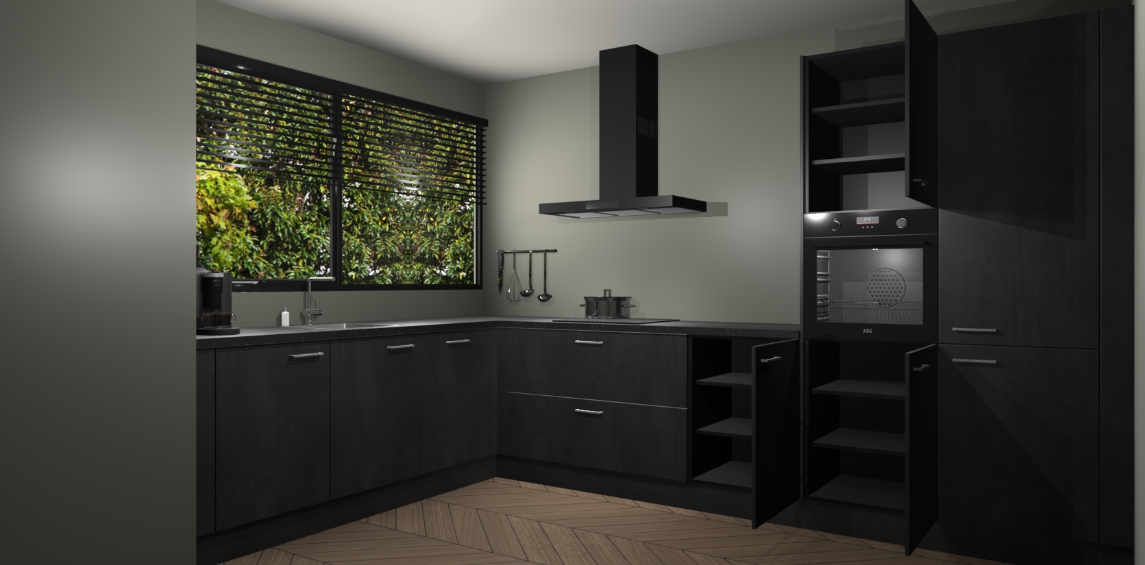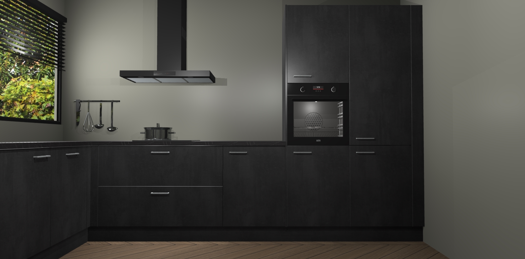 Wij presenteren de revolutie in keukens: de Beton Zwarte keuken Rhodos. Met modern design, een tijdloos uiterlijk en kasten die al voor gemonteerd worden geleverd, laat deze stijlvolle keuken uw kookervaring op een hele nieuwe manier transformeren.