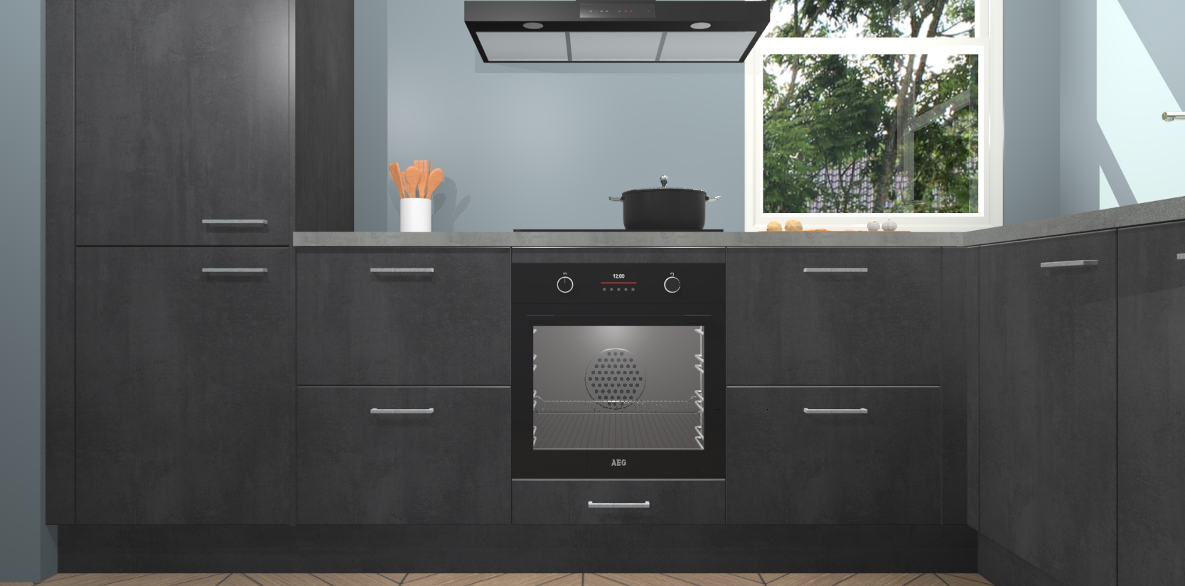Wat maakt deze keuken zo bijzonder? Ten eerste geeft het houten werkblad uw ruimte een onmiskenbaar klassieke uitstraling. De natuurlijke afwerking roept warmte en elegantie op die nooit uit de mode zullen raken. Bovendien is het gemakkelijk schoon te houden en te onderhouden, zodat je er jarenlang plezier van kunt hebben. Als u op zoek bent naar extra gemak in uw keuken, dan heeft u bij het plaatsen van een bestelling bij ons ook de optie om uw toestellen te upgraden naar AEG-modellen - zo haalt u moderne innovatie van topmerken in apparatentechnologie rechtstreeks in huis.