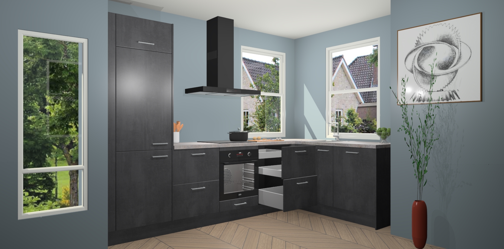 Mis deze geweldige kans niet! Met een Beton Zwarte keuken Salzburg krijgt u schoonheid van kwaliteit voor een overslaanbare prijs - wat wilt u nog meer? Van een stijlvol nieuw middelpunt in uw leefruimte en gemakkelijke upgrademogelijkheden, verwen uzelf vandaag nog met de Beton Zwarte keuken Salzburg!