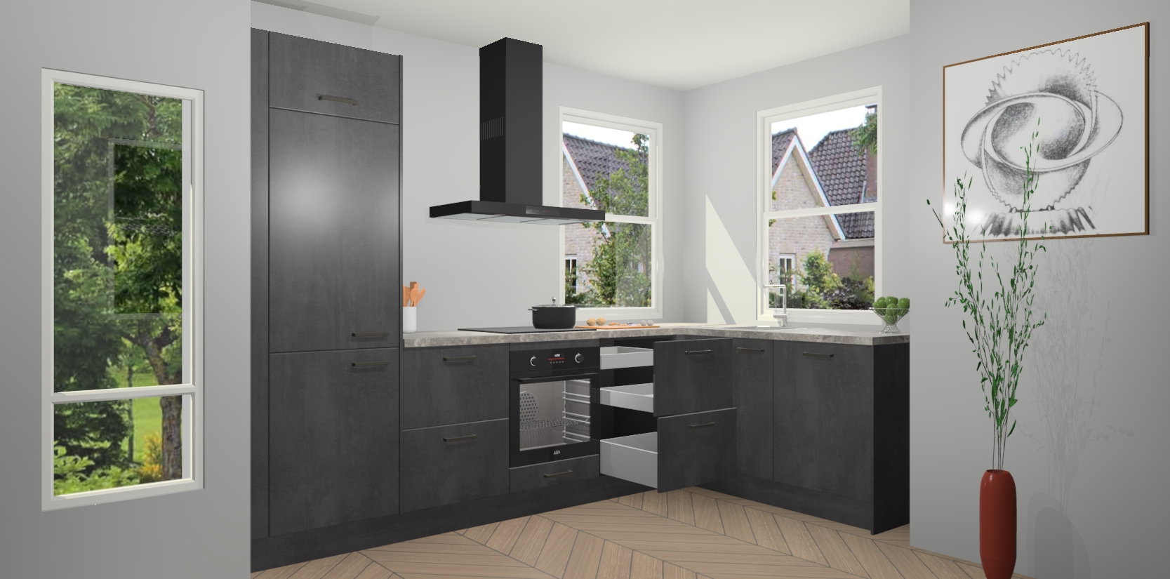 Mis deze geweldige kans niet! Met een Beton Zwarte keuken Salzburg krijgt u schoonheid van kwaliteit voor een overslaanbare prijs - wat wilt u nog meer? Van een stijlvol nieuw middelpunt in uw leefruimte en gemakkelijke upgrademogelijkheden, verwen uzelf vandaag nog met de Beton Zwarte keuken Salzburg!