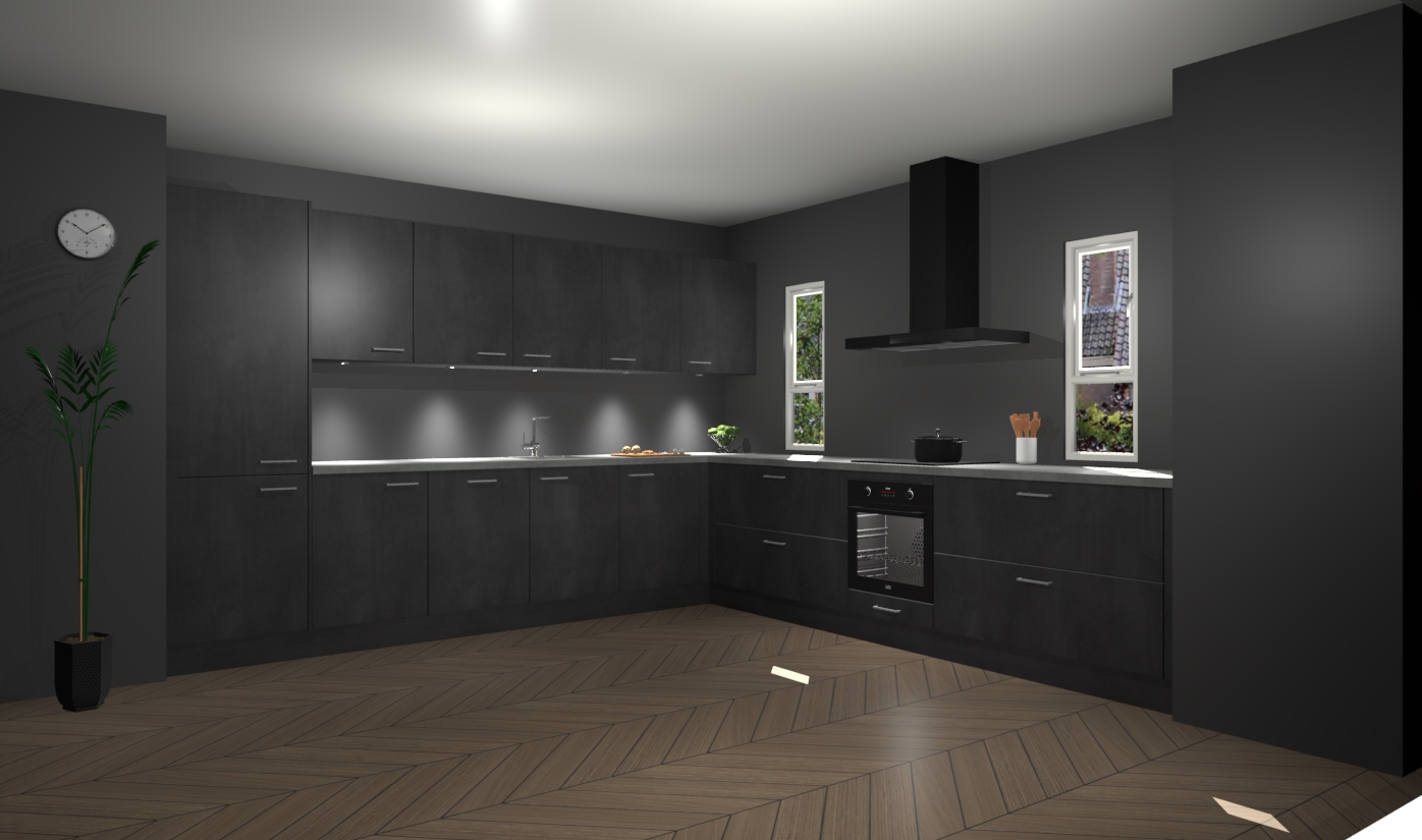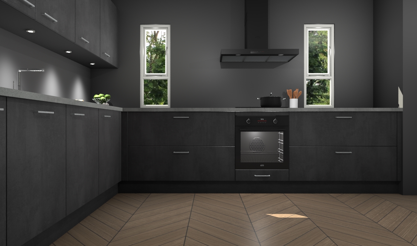 De beton zwarte keuken is een ideale hoekkeuken en heeft alle functies en apparatuur die u maar nodig kunt hebben. Bij de bestelling krijgt u een oven, inductiekookplaat, afzuigkap, vaatwasser en koelkast - deze kunnen desgewenst eenvoudig worden uitgebreid naar AEG na bestellen. Elke kast wordt ook voor gemonteerd geleverd met soft close deuren die jarenlang gebruik beloven. Stelt u zich voor dat u geen gedoe heeft met vervelende montage - vanaf het moment dat u uw bestelling plaats, duurt het slechts 7 weken voor het bij u thuis geleverd wordt.