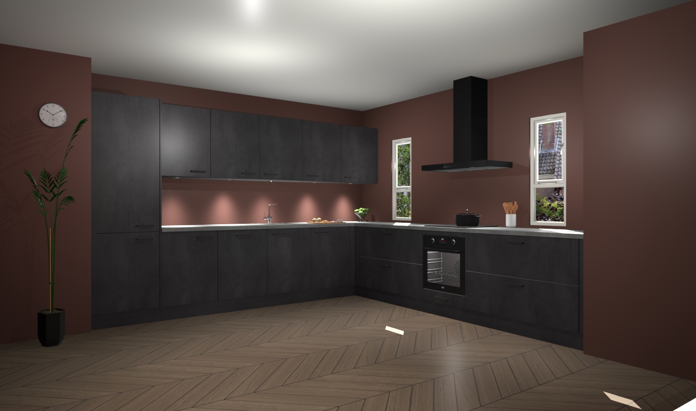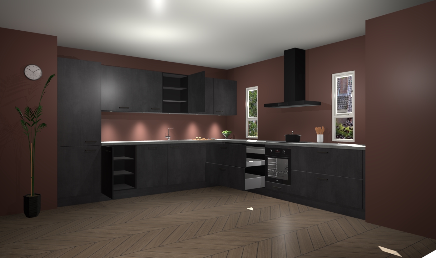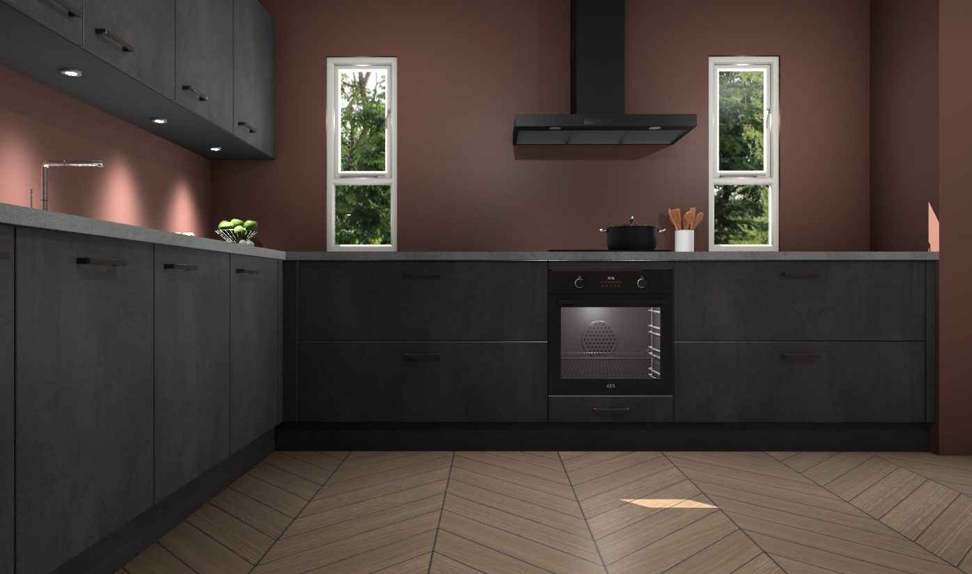 De beton zwarte keuken is een ideale hoekkeuken en heeft alle functies en apparatuur die u maar nodig kunt hebben. Bij de bestelling krijgt u een oven, inductiekookplaat, afzuigkap, vaatwasser en koelkast - deze kunnen desgewenst eenvoudig worden uitgebreid naar AEG na bestellen. Elke kast wordt ook voor gemonteerd geleverd met soft close deuren die jarenlang gebruik beloven. Stelt u zich voor dat u geen gedoe heeft met vervelende montage - vanaf het moment dat u uw bestelling plaats, duurt het slechts 7 weken voor het bij u thuis geleverd wordt.