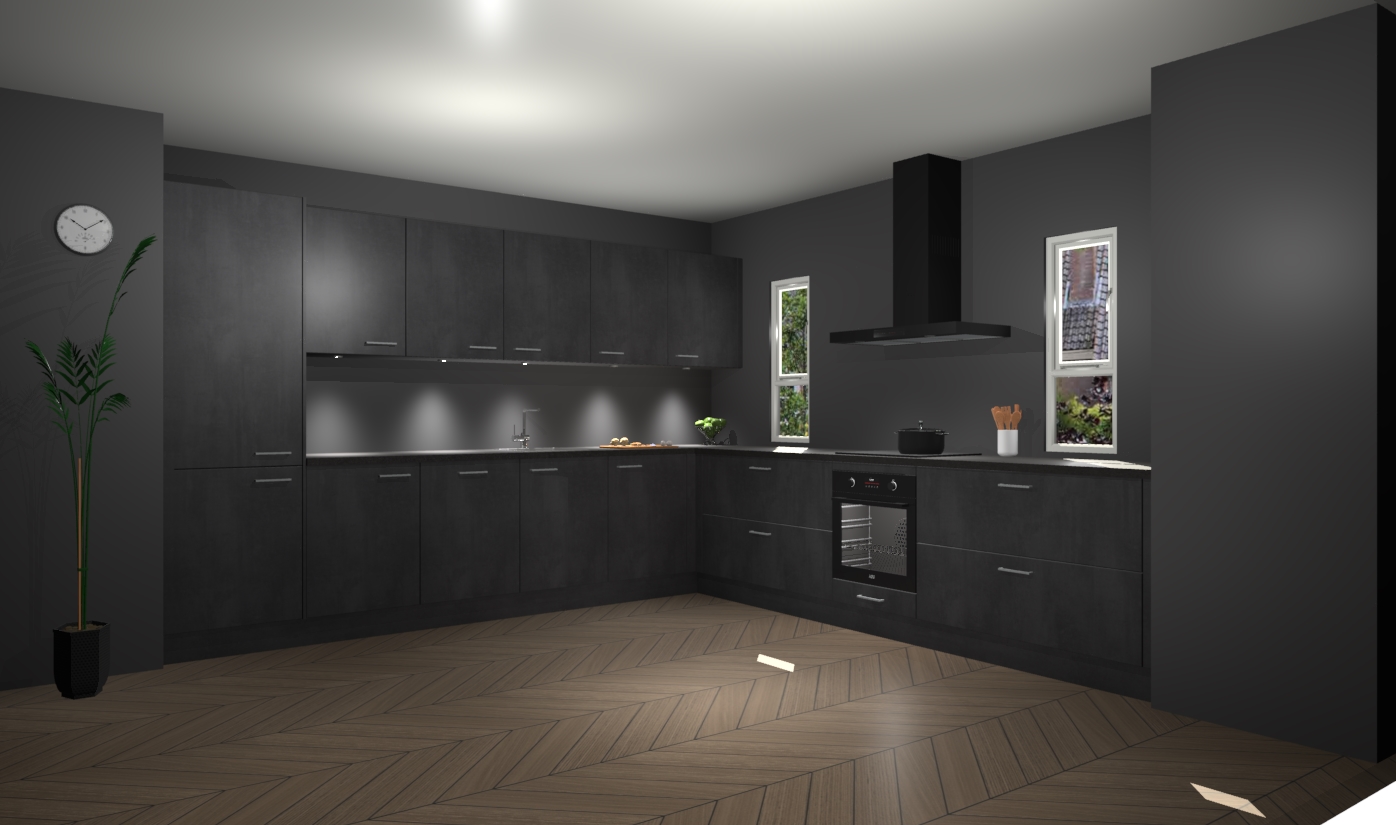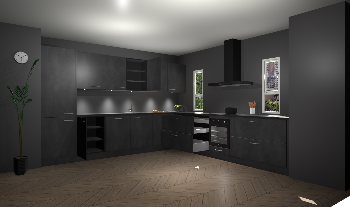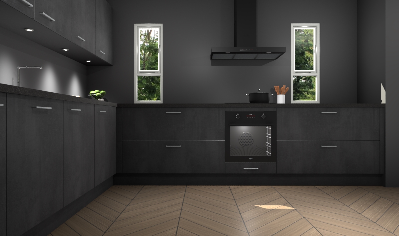 De beton zwarte keuken is een ideale hoekkeuken en heeft alle functies en apparatuur die u maar nodig kunt hebben. Bij de bestelling krijgt u een oven, inductiekookplaat, afzuigkap, vaatwasser en koelkast - deze kunnen desgewenst eenvoudig worden uitgebreid naar AEG na bestellen. Elke kast wordt ook voor gemonteerd geleverd met soft close deuren die jarenlang gebruik beloven. Stelt u zich voor dat u geen gedoe heeft met vervelende montage - vanaf het moment dat u uw bestelling plaats, duurt het slechts 7 weken voor het bij u thuis geleverd wordt.