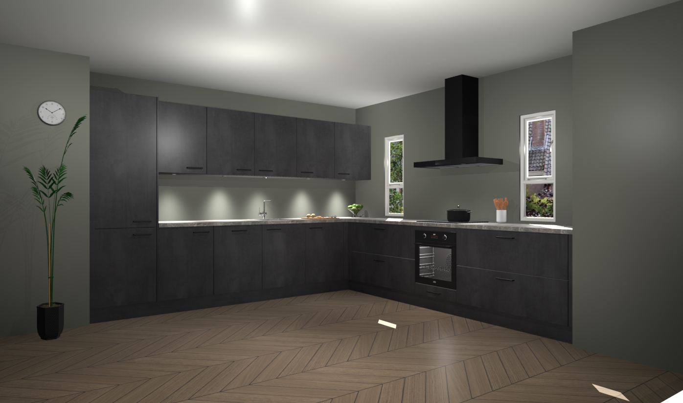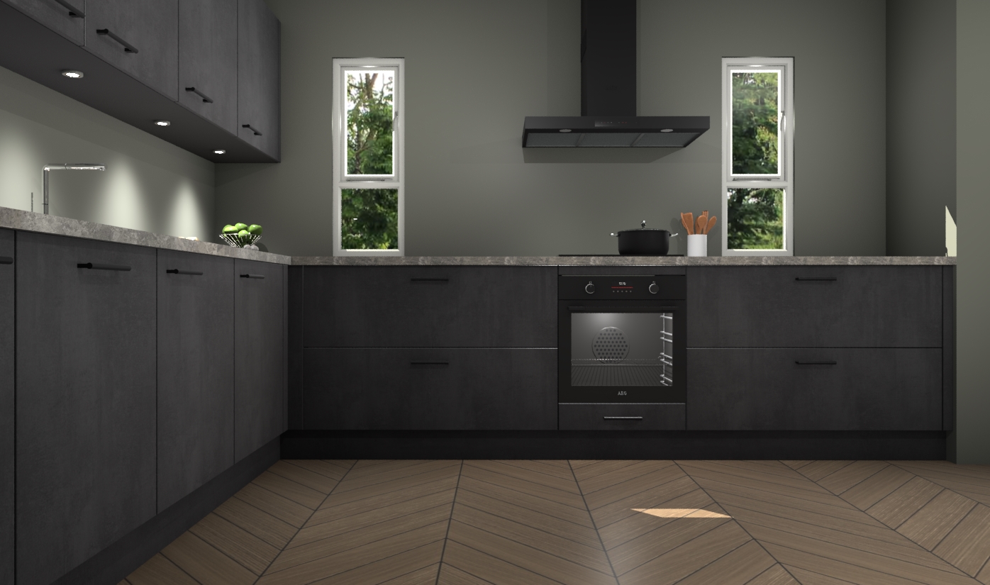 De beton zwarte keuken is een ideale hoekkeuken en heeft alle functies en apparatuur die u maar nodig kunt hebben. Bij de bestelling krijgt u een oven, inductiekookplaat, afzuigkap, vaatwasser en koelkast - deze kunnen desgewenst eenvoudig worden uitgebreid naar AEG na bestellen. Elke kast wordt ook voor gemonteerd geleverd met soft close deuren die jarenlang gebruik beloven. Stelt u zich voor dat u geen gedoe heeft met vervelende montage - vanaf het moment dat u uw bestelling plaats, duurt het slechts 7 weken voor het bij u thuis geleverd wordt.