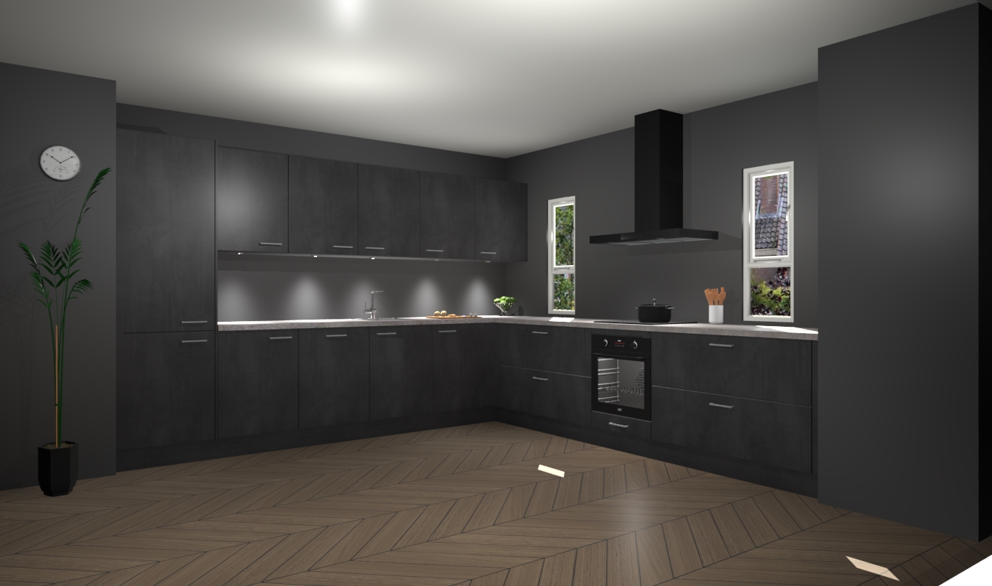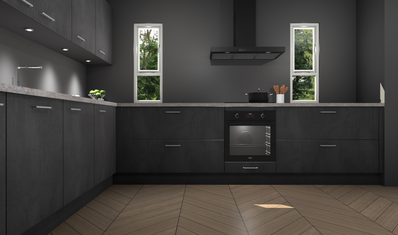 De beton zwarte keuken is een ideale hoekkeuken en heeft alle functies en apparatuur die u maar nodig kunt hebben. Bij de bestelling krijgt u een oven, inductiekookplaat, afzuigkap, vaatwasser en koelkast - deze kunnen desgewenst eenvoudig worden uitgebreid naar AEG na bestellen. Elke kast wordt ook voor gemonteerd geleverd met soft close deuren die jarenlang gebruik beloven. Stelt u zich voor dat u geen gedoe heeft met vervelende montage - vanaf het moment dat u uw bestelling plaats, duurt het slechts 7 weken voor het bij u thuis geleverd wordt.